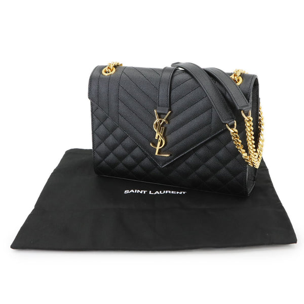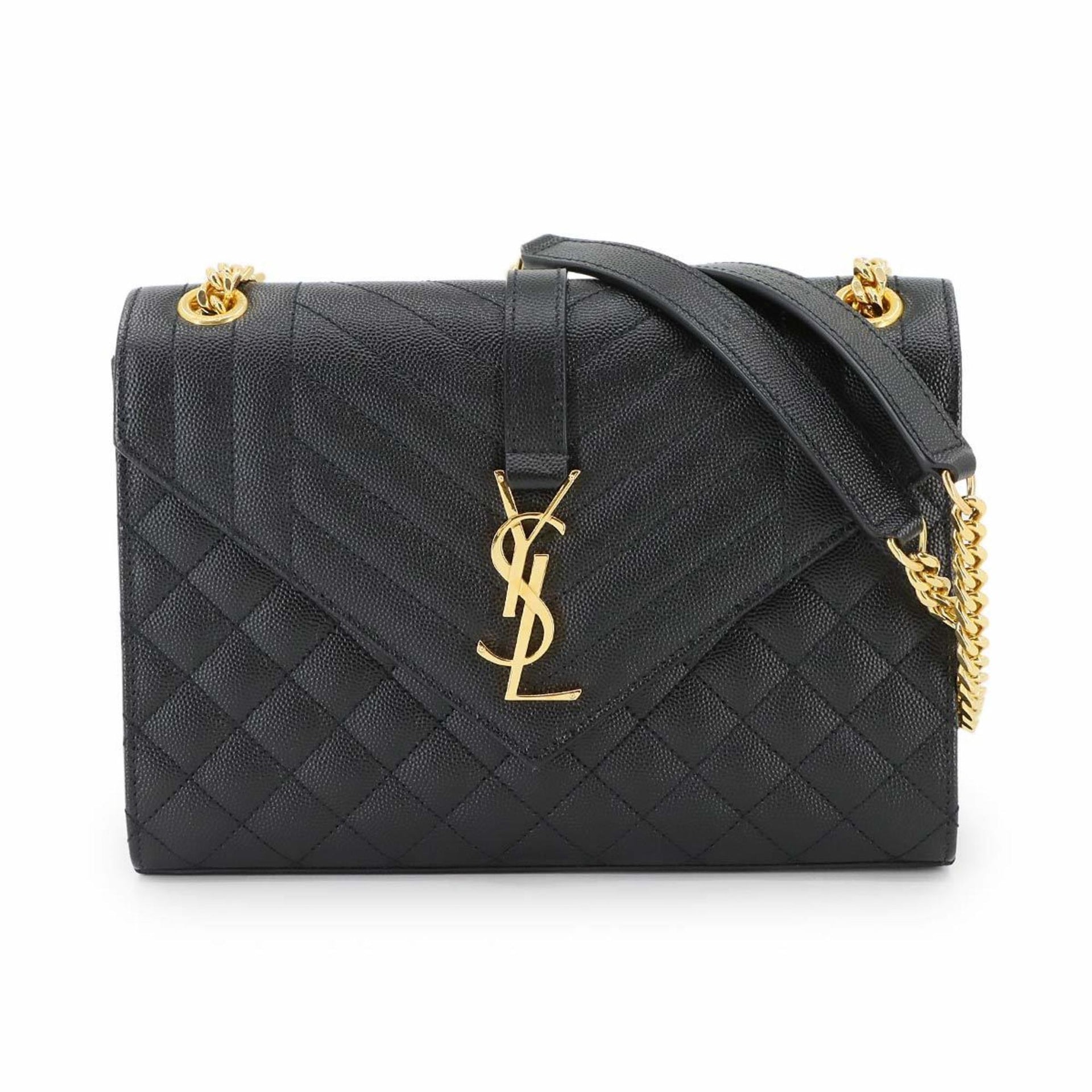 Saint Laurent Envelope Medium Chain Shoulder Bag in Black Leather (600185)