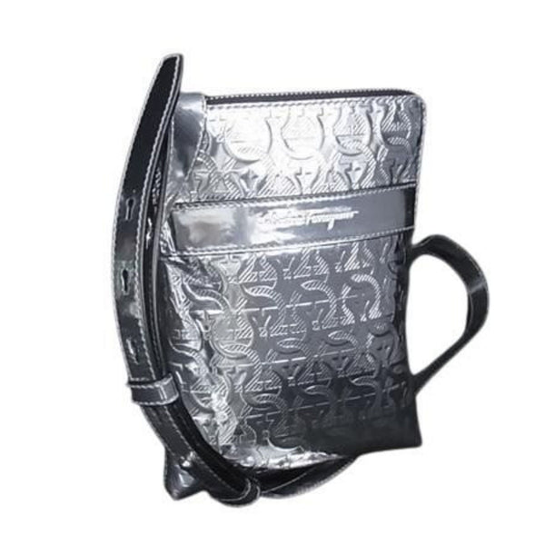 Salvatore Ferragamo Gancini Shoulder Bag GG24 0311 Silver and Leather for Men Women