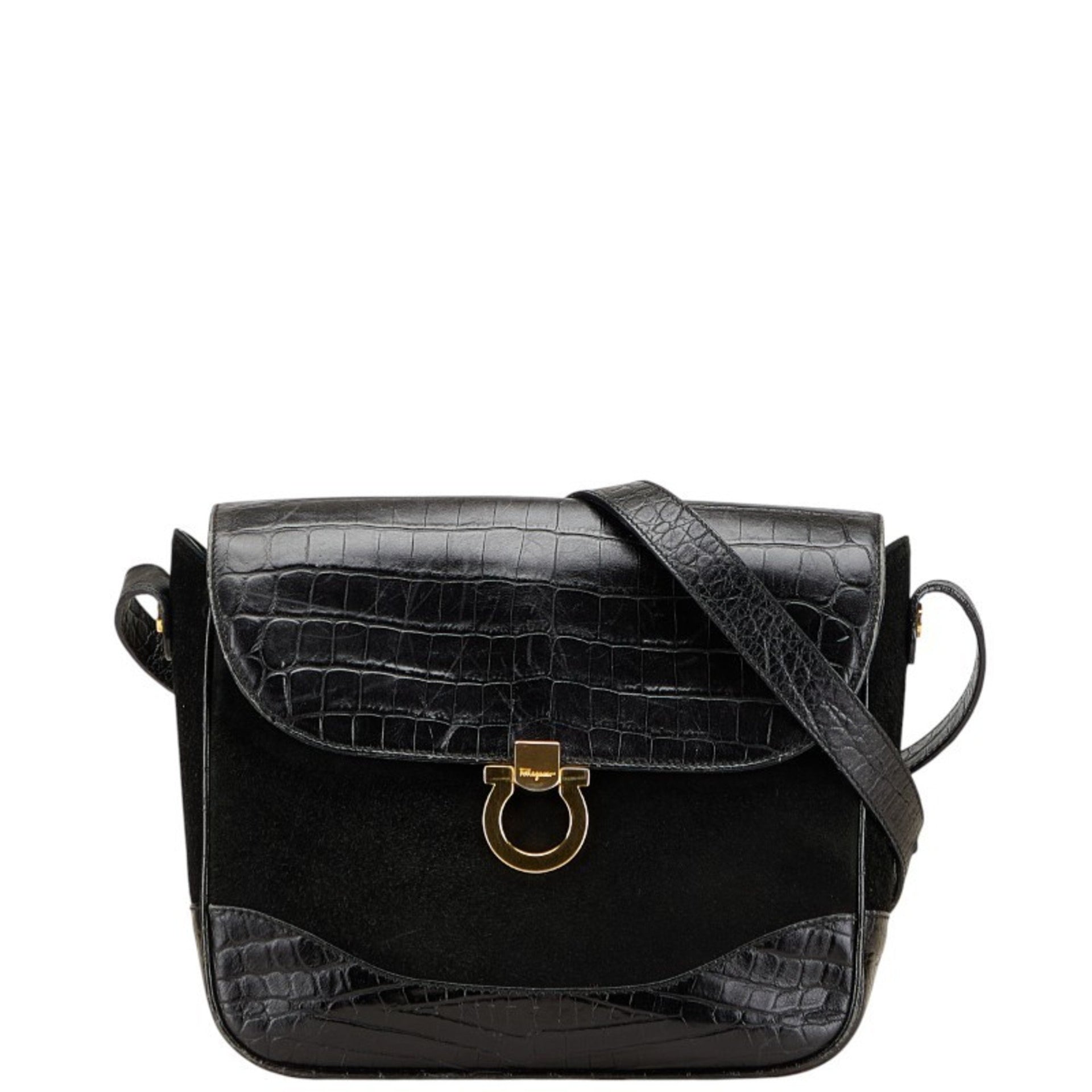 Salvatore Ferragamo Gancini Shoulder Bag in Black Leather, Sweatshirt for Women
