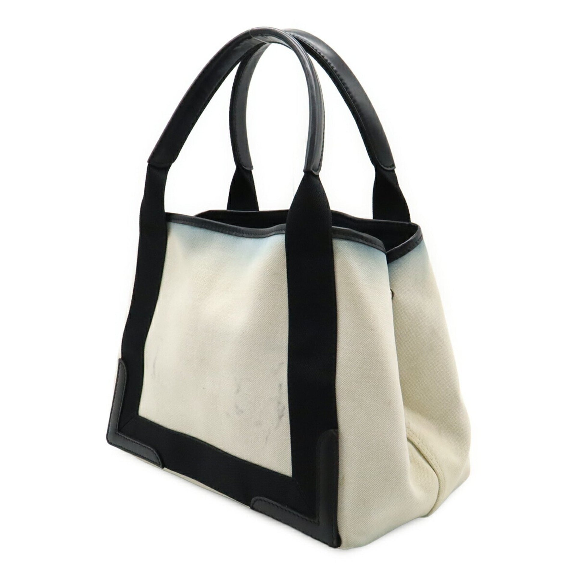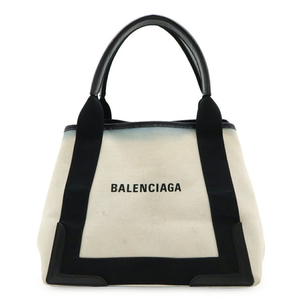 BALENCIAGA Navy Cabas S Tote Bag, Handbag, Canvas, Leather, Natural Black, Pouch Not Included, 339933
