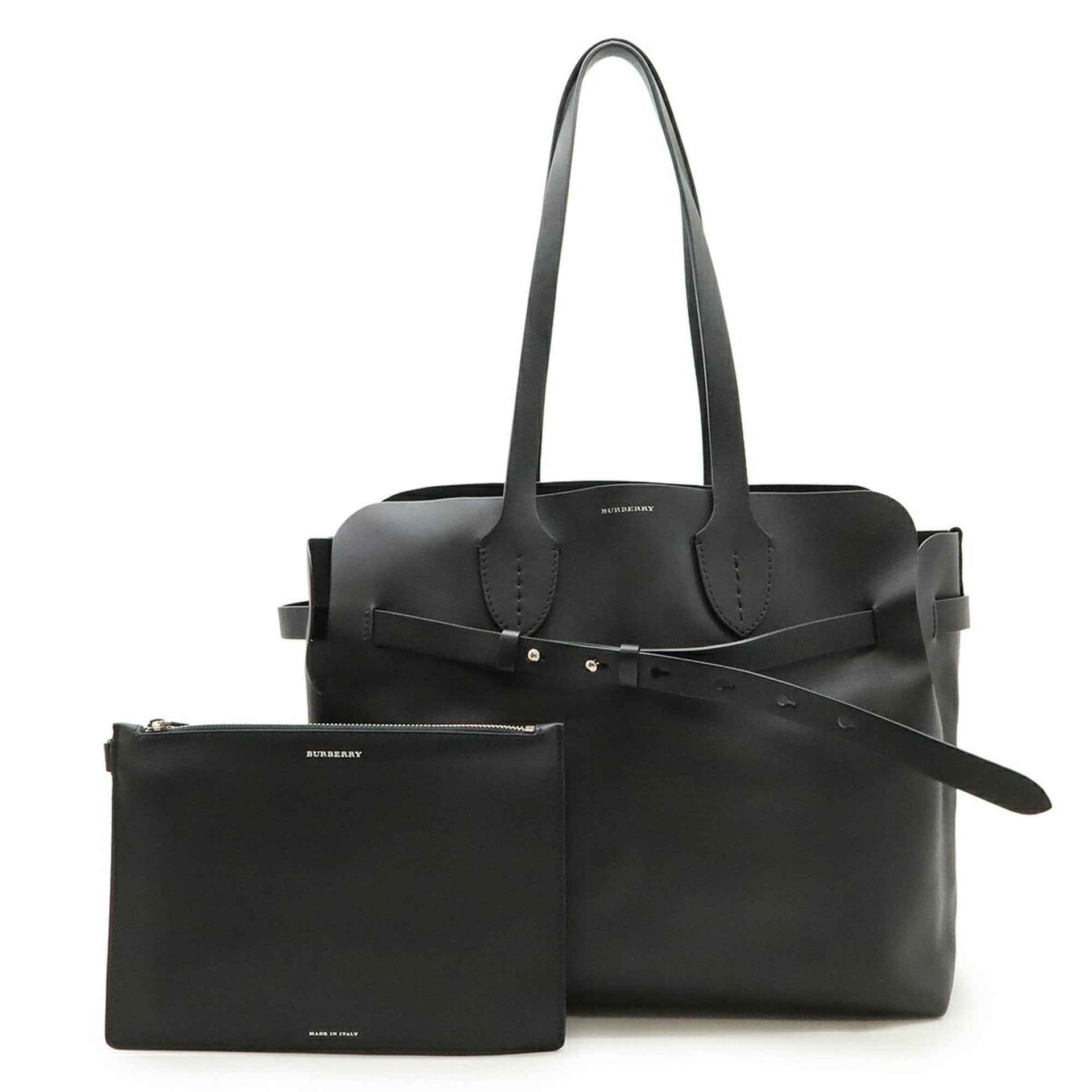 BURBERRY Tote Bag Shoulder Leather Black