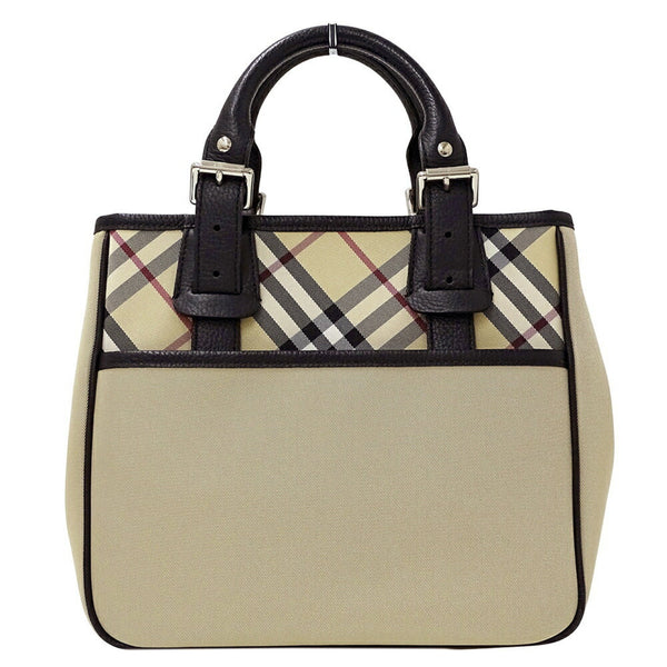 Burberry Women\'s Tote Bag, Beige Check Nylon Handbag