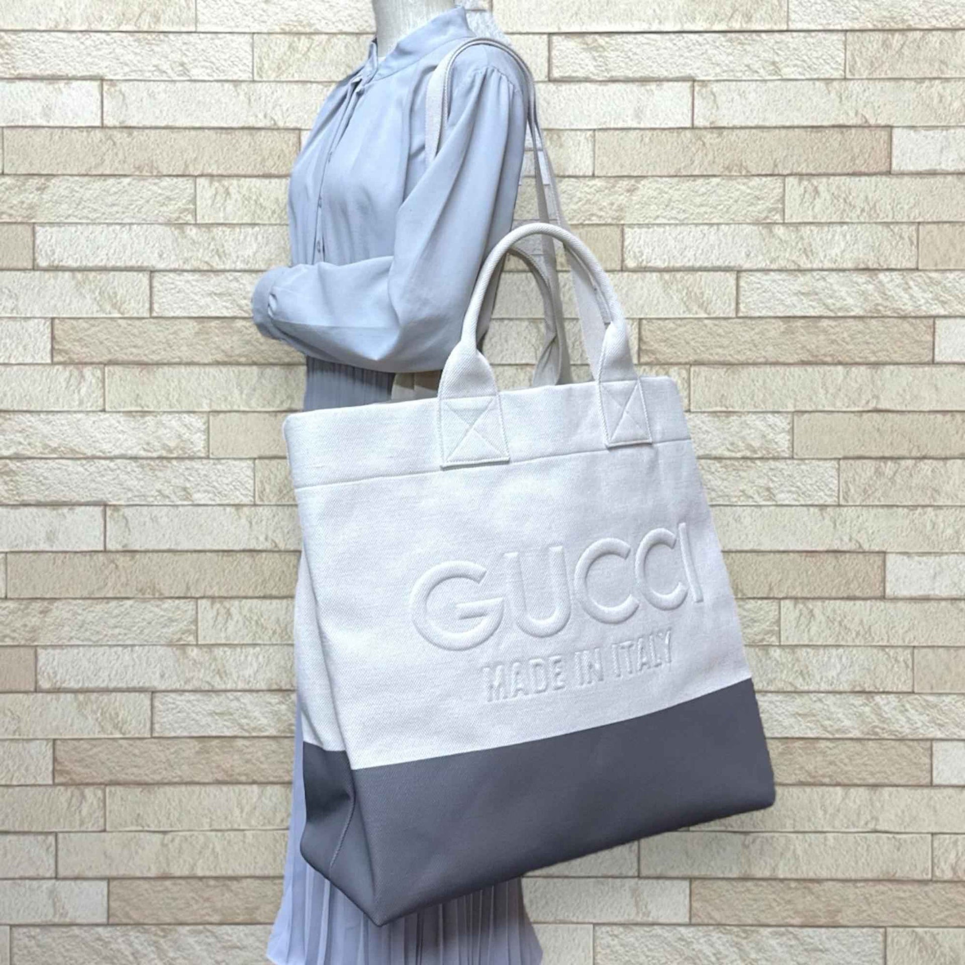 Gucci embossed tote bag in GG canvas (779510), beige, unisex, 2-way