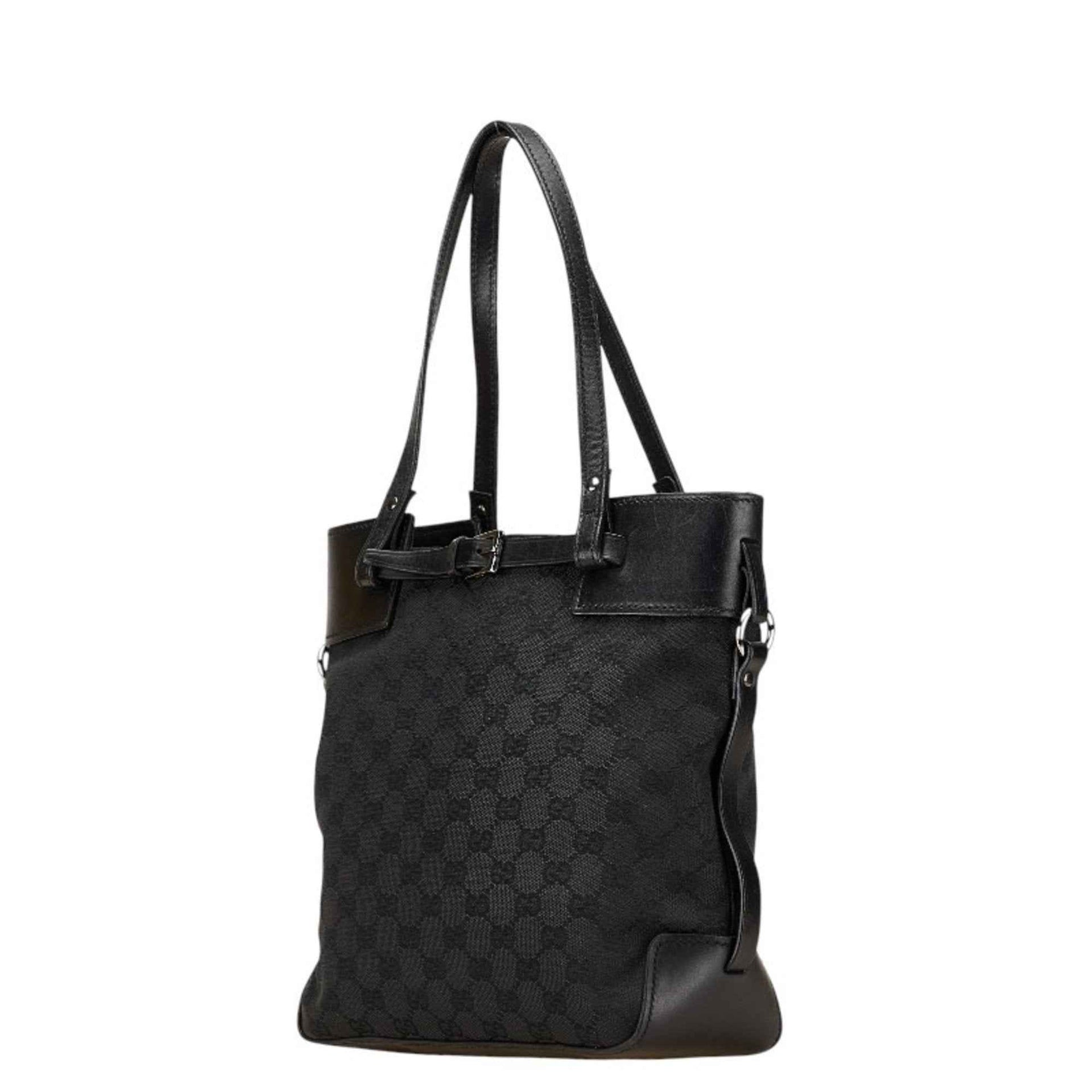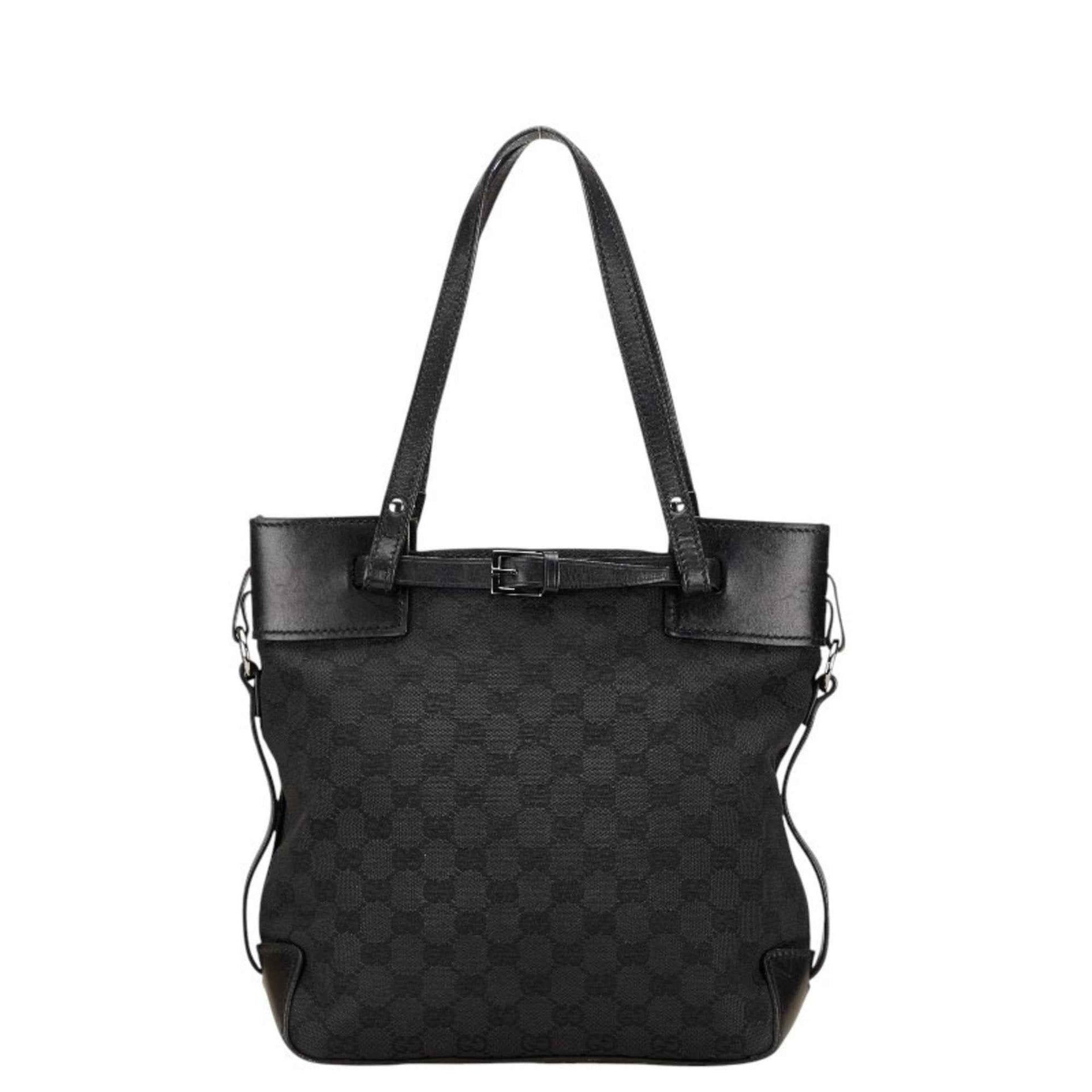 Gucci GG Canvas Handbag Tote Bag Black Leather Women\'s GUCCI