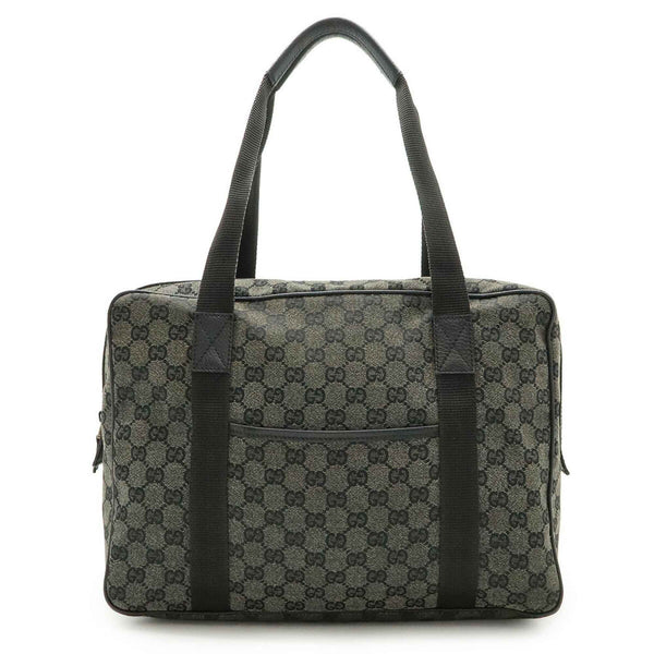 GUCCI GG Canvas Tote Bag Shoulder Leather Dark Gray Black 282529