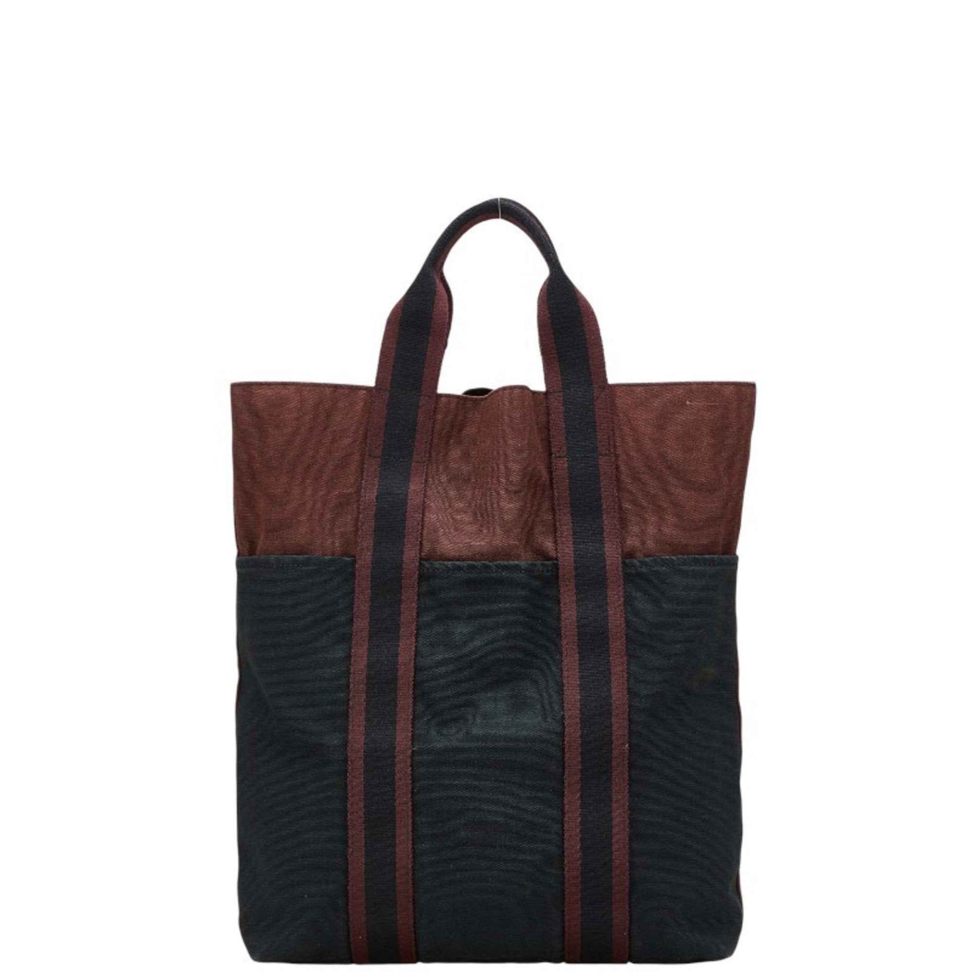 Hermès Foule To Cabas Tote Bag Handbag Black Bordeaux Canvas Women\'s HERMES