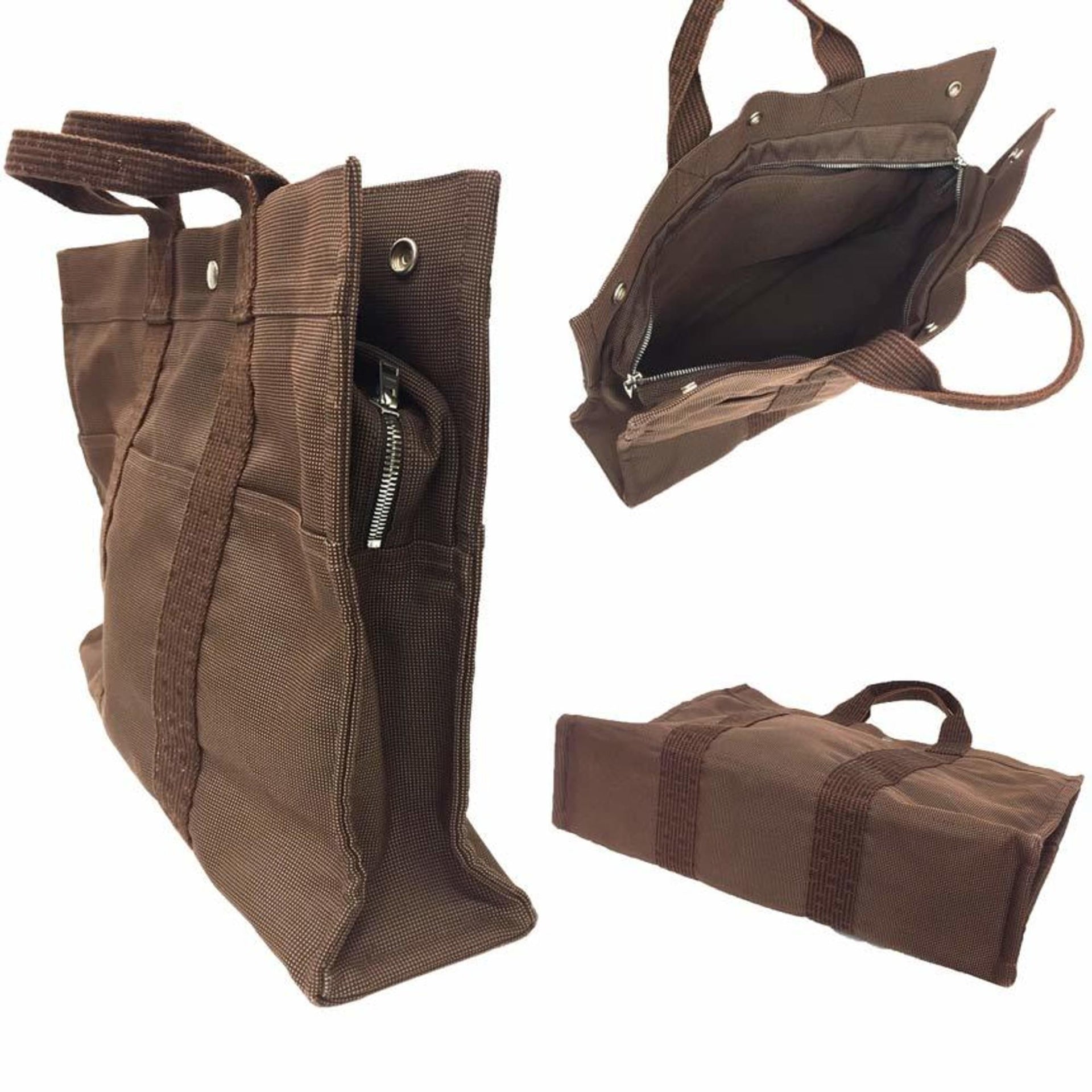 Hermes Hermès Air Line Tote Bag MM SAC DE VOYAGE HERLINE Nylon Canvas Brown Men\'s/Women\'s