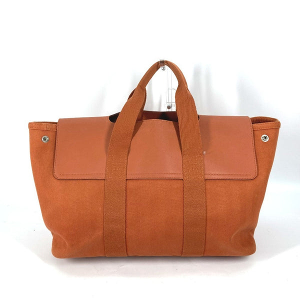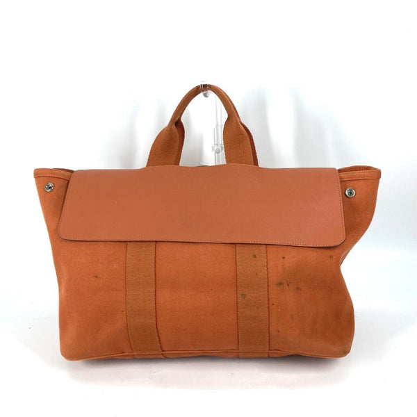HERMES Valparaiso MM Tote Bag with Pouch, Canvas/Leather, Orange, Women\'s