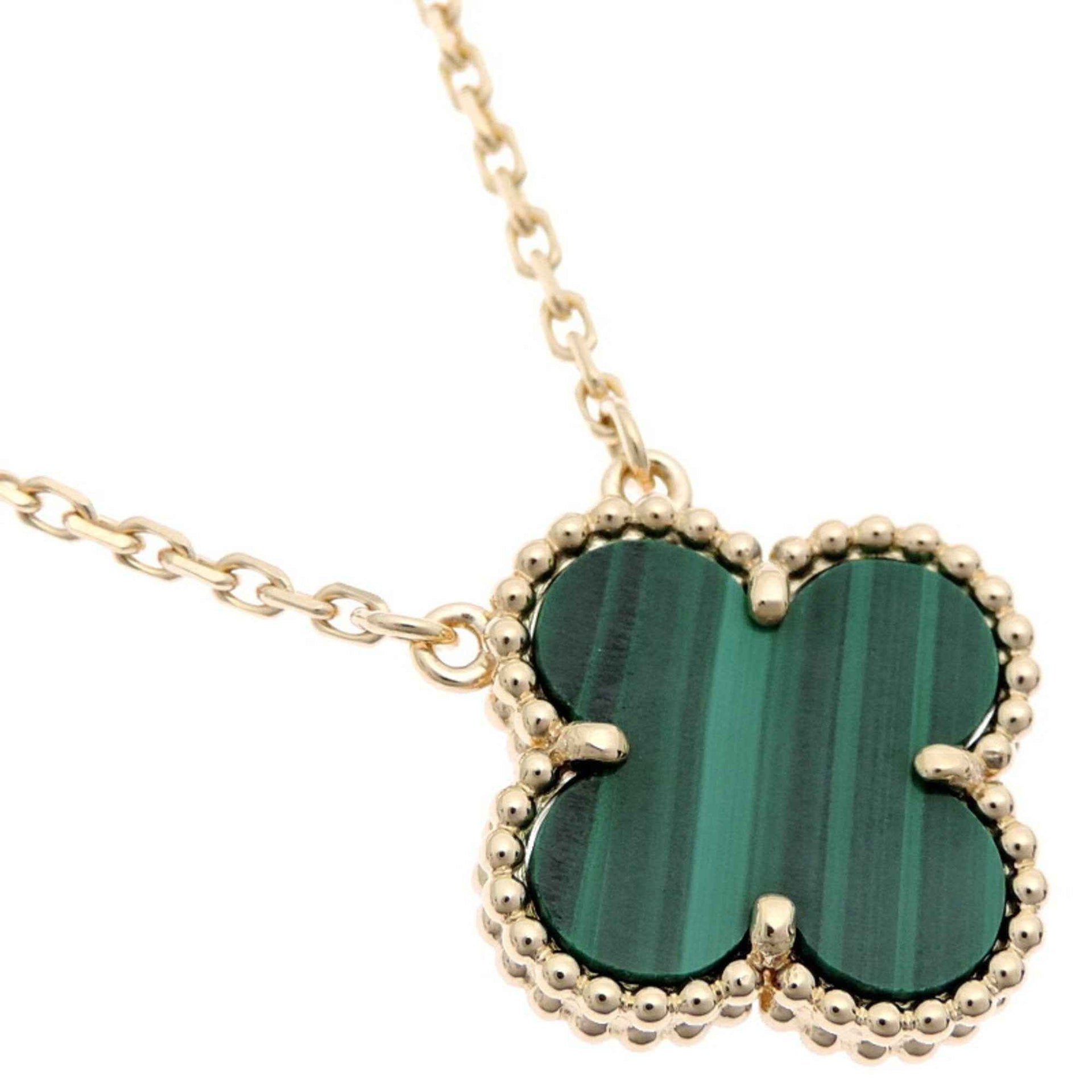 Van Cleef & Arpels Alhambra Malachite Pendant Necklace for Women, VCARO9VA00, 750 Yellow Gold and Green