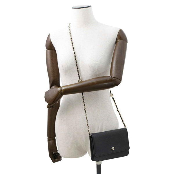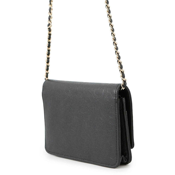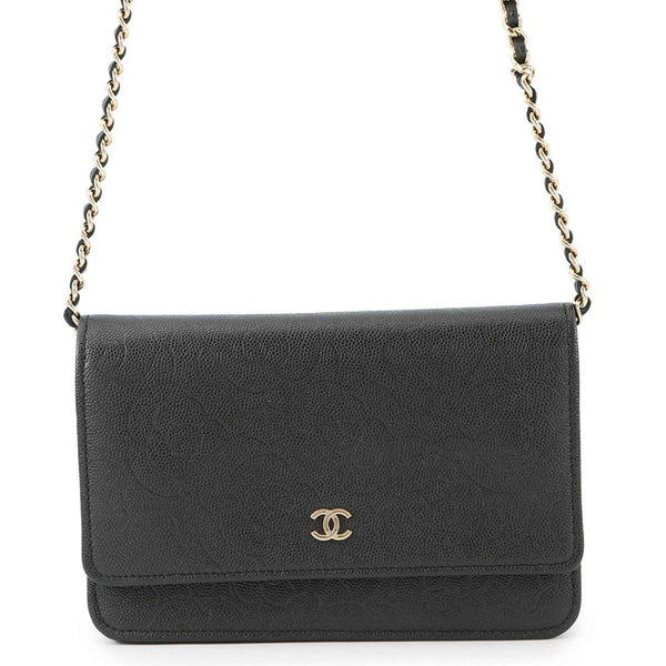 Chanel Chain Wallet Camellia Coco Mark Caviar Skin 7421 CHANEL Black