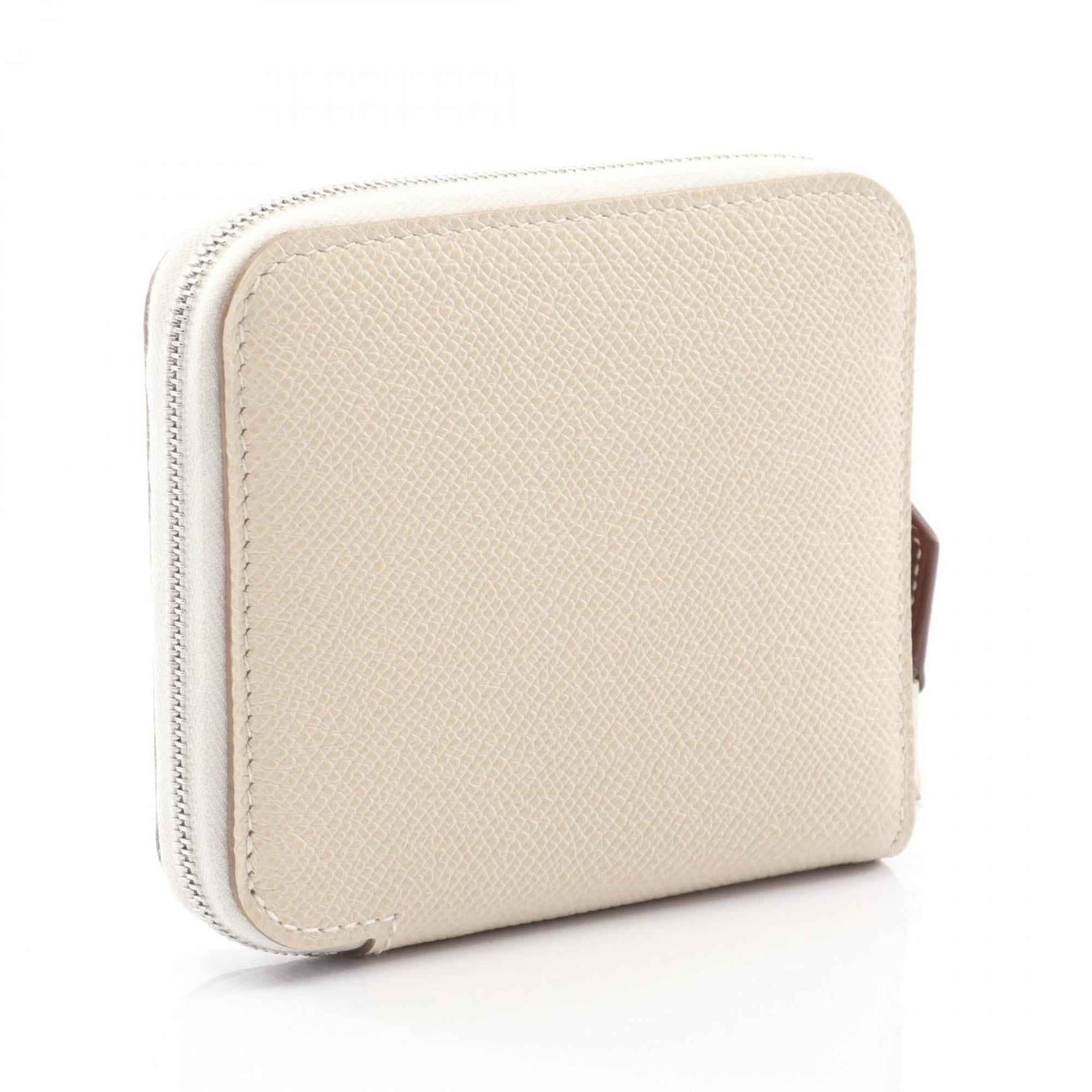 Hermes Hermès Azap Compact Silkin Round Wallet in Calfskin Leather (Veau Epsom Leather) for Women, Ivory
