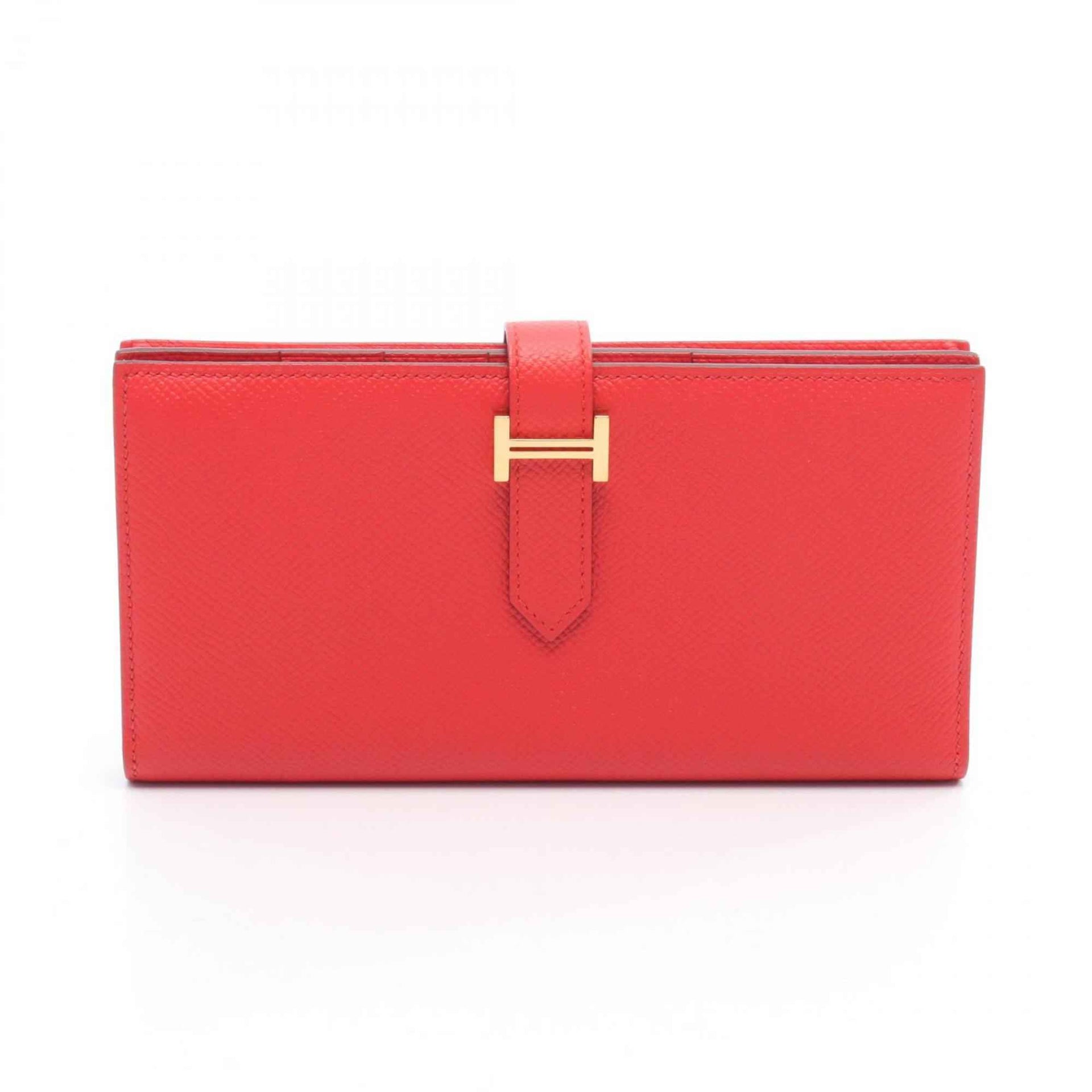 Hermes Hermès Bearn Soufflet Bi-fold Long Wallet in Calfskin Leather (Cowhide) with Epsom Leather, Red, for Women
