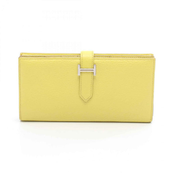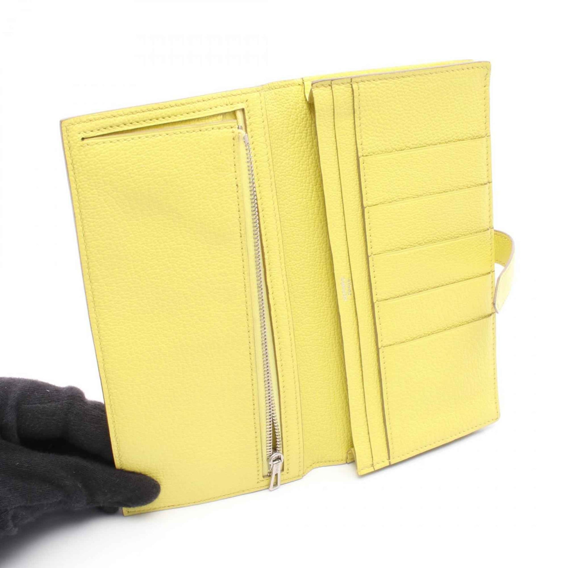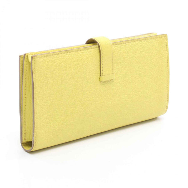 Hermes Hermès Bearn Soufflet Bi-fold Long Wallet, Leather, Chevre, Women\'s, Yellow