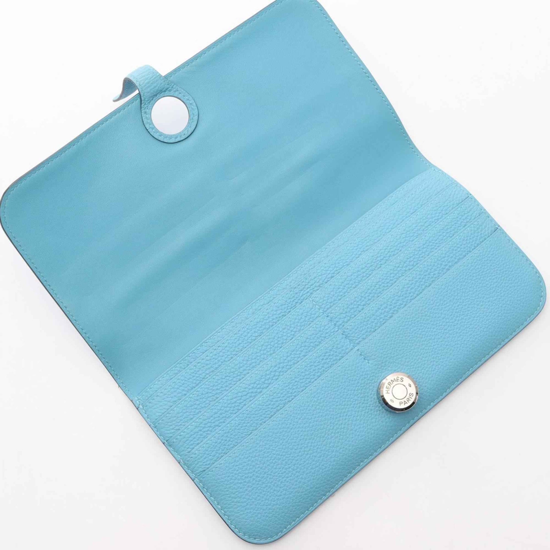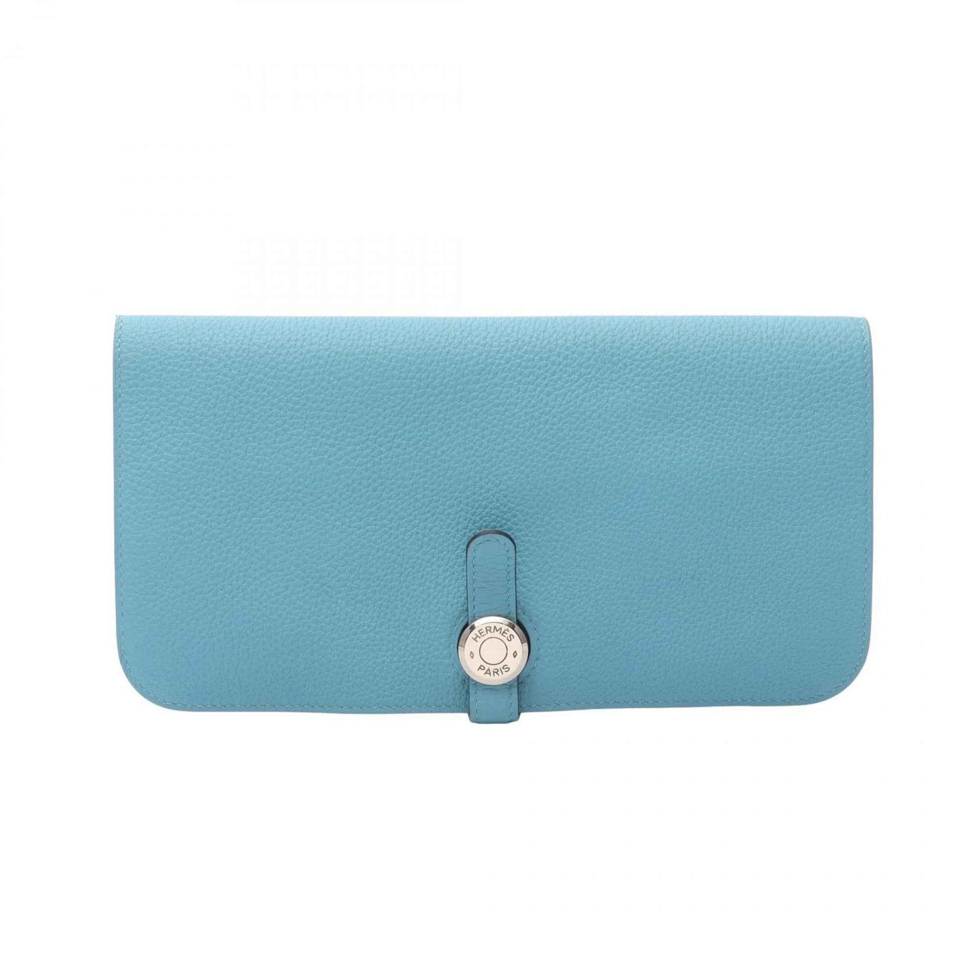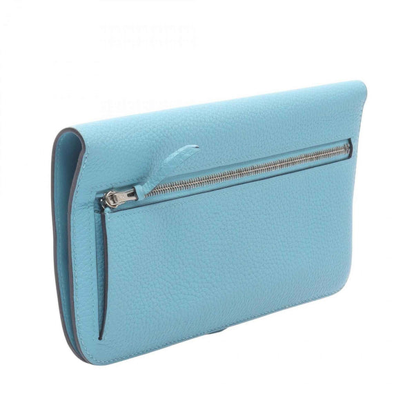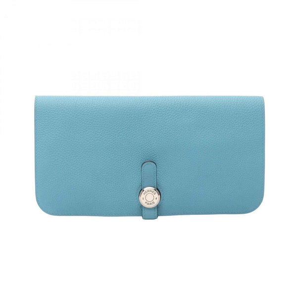 Hermes Hermès Dogon Long Bifold Wallet Leather Togo Women\'s Blue