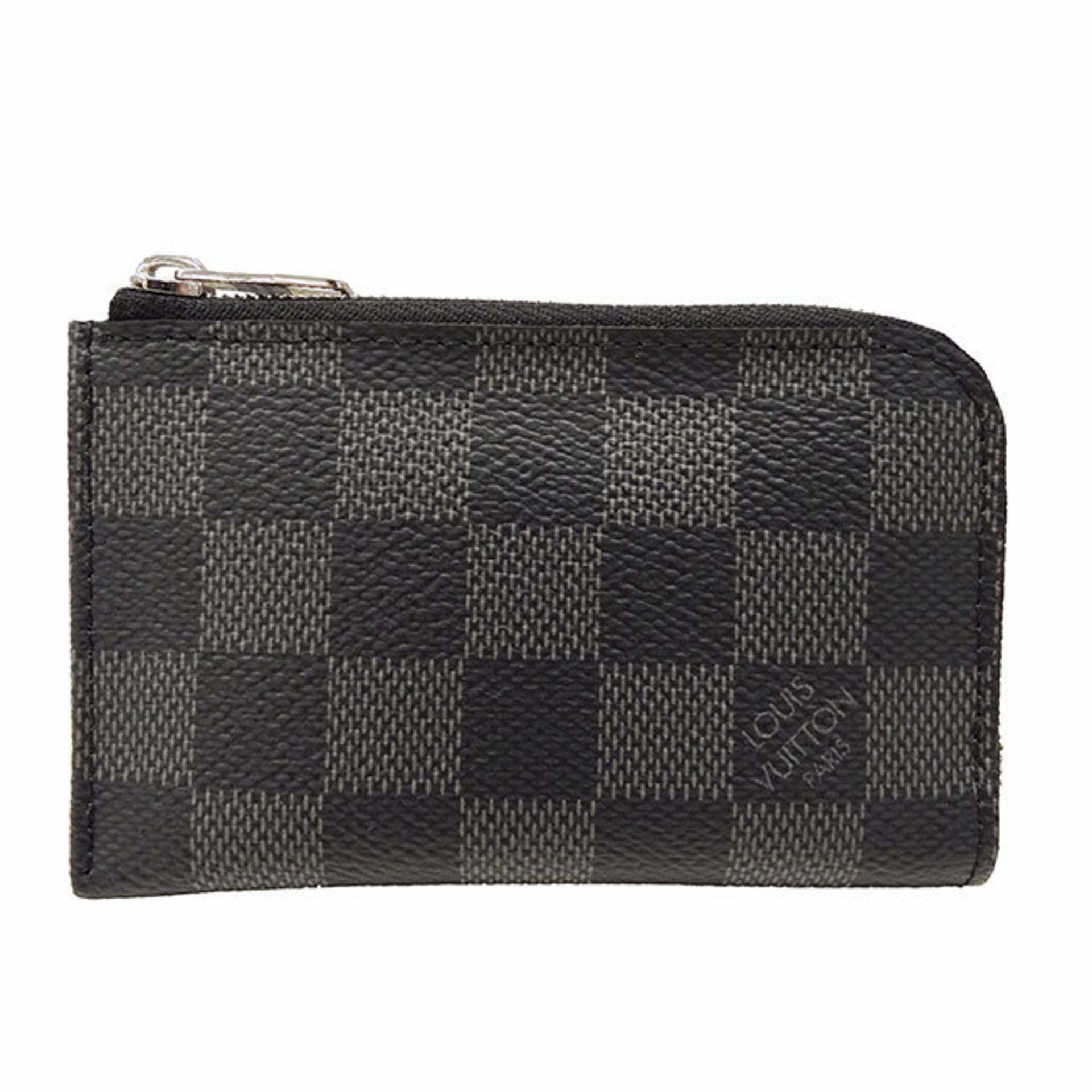 Louis Vuitton Men\'s Wallet, Damier Graphite Canvas Porte Monnaie NM Black N63237, L-Zip Coin Purse