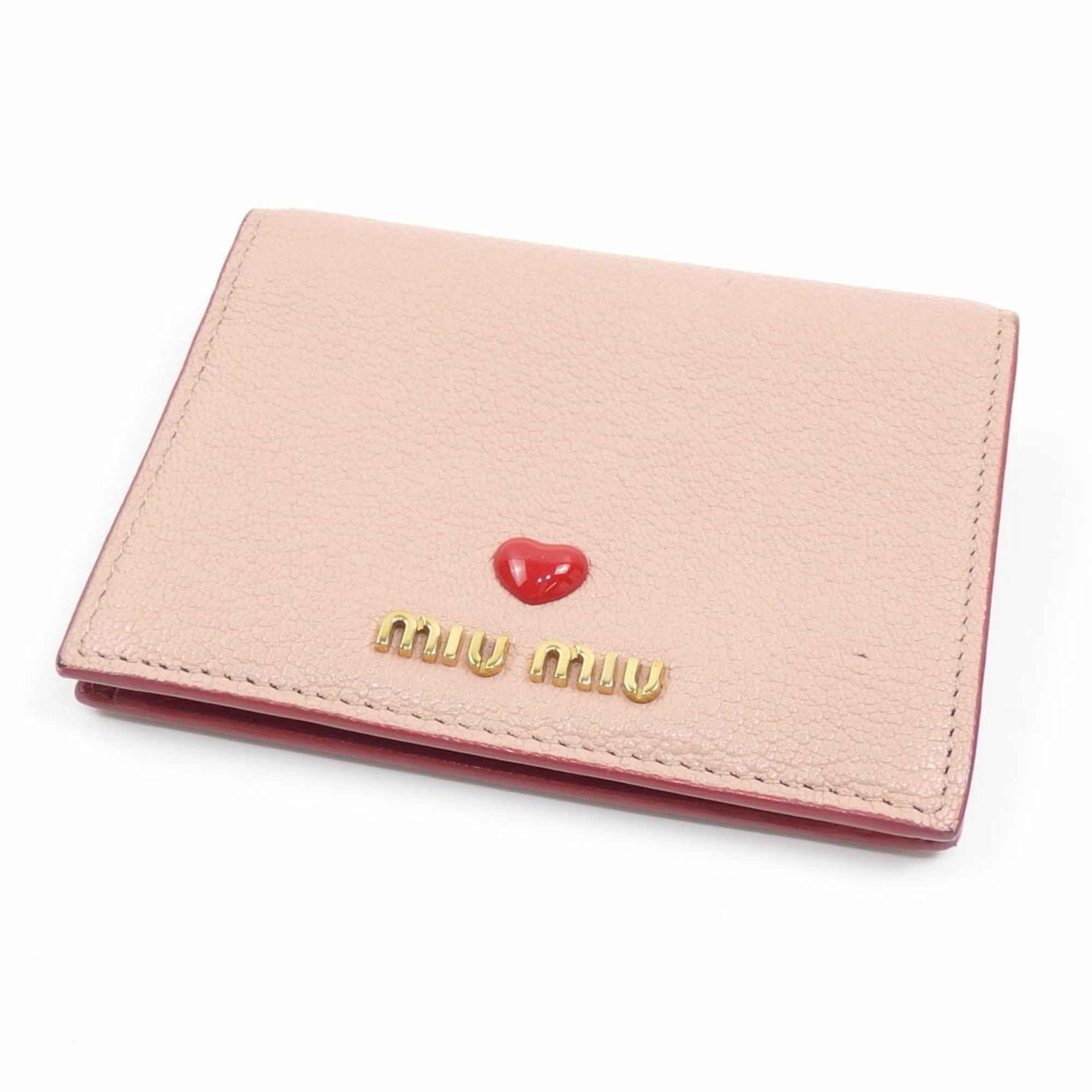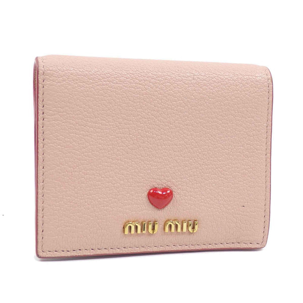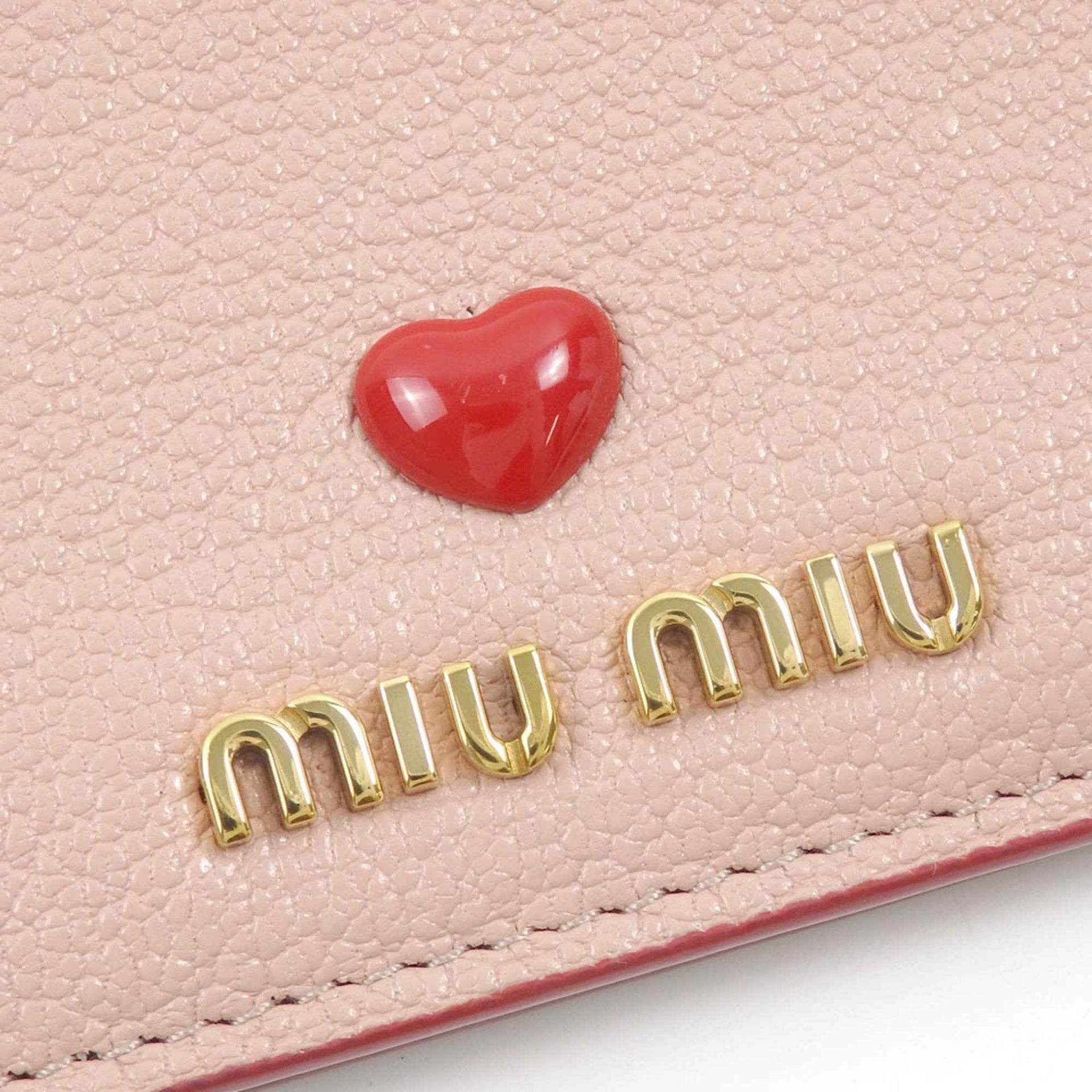 Miu Miu Miu Women\'s Orchidea Leather Bifold Wallet 5MV204 Madras Love Heart Pink A6051882