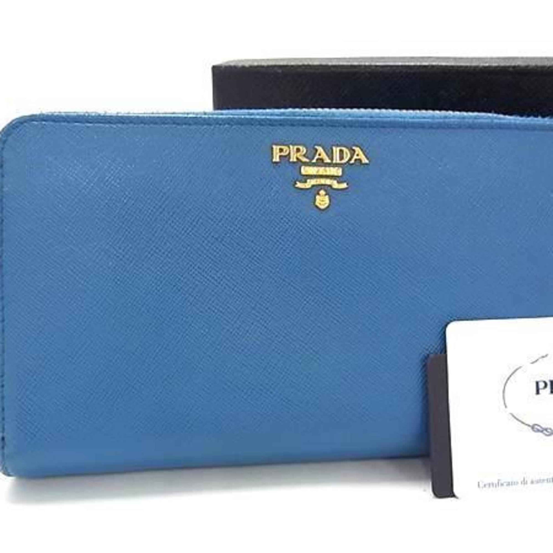PRADA Prada Wallet 1M1348 Blue Saffiano Leather Round Bifold Long for Men and Women