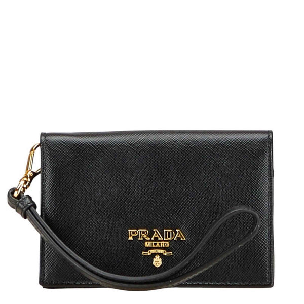 Prada Saffiano Business Card Holder/Card Case 1M1439 Black Leather Women\'s PRADA