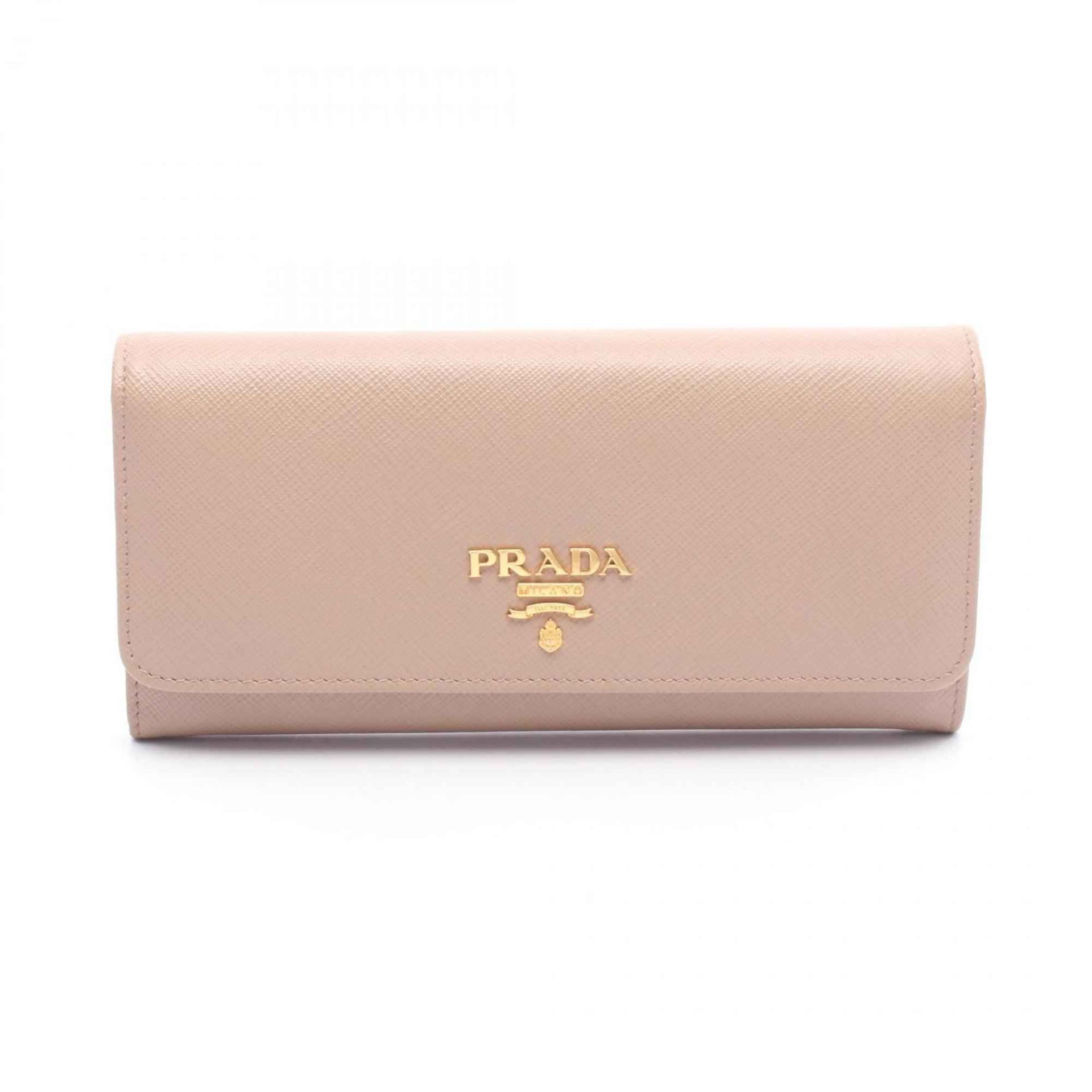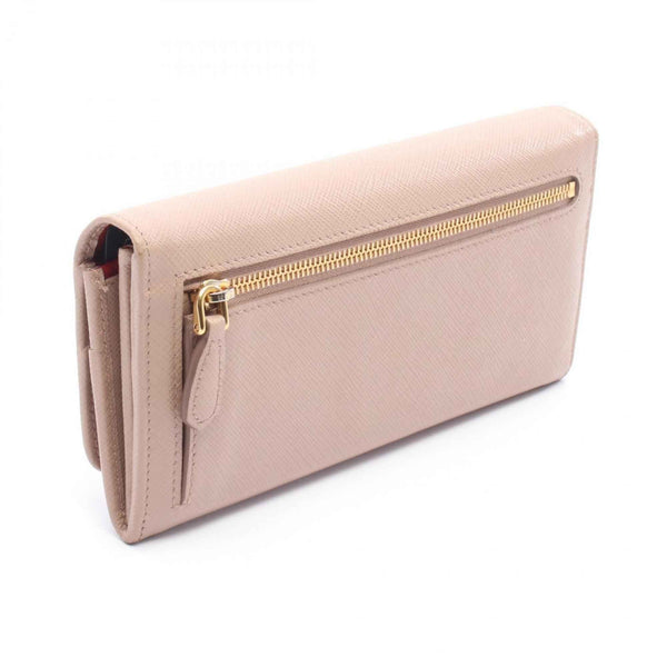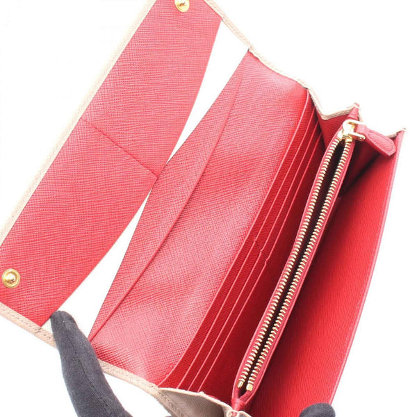 Prada SAFFIANO MULTIC Bi-fold Long Wallet, Saffiano Leather, Women\'s, Beige, 1MH132