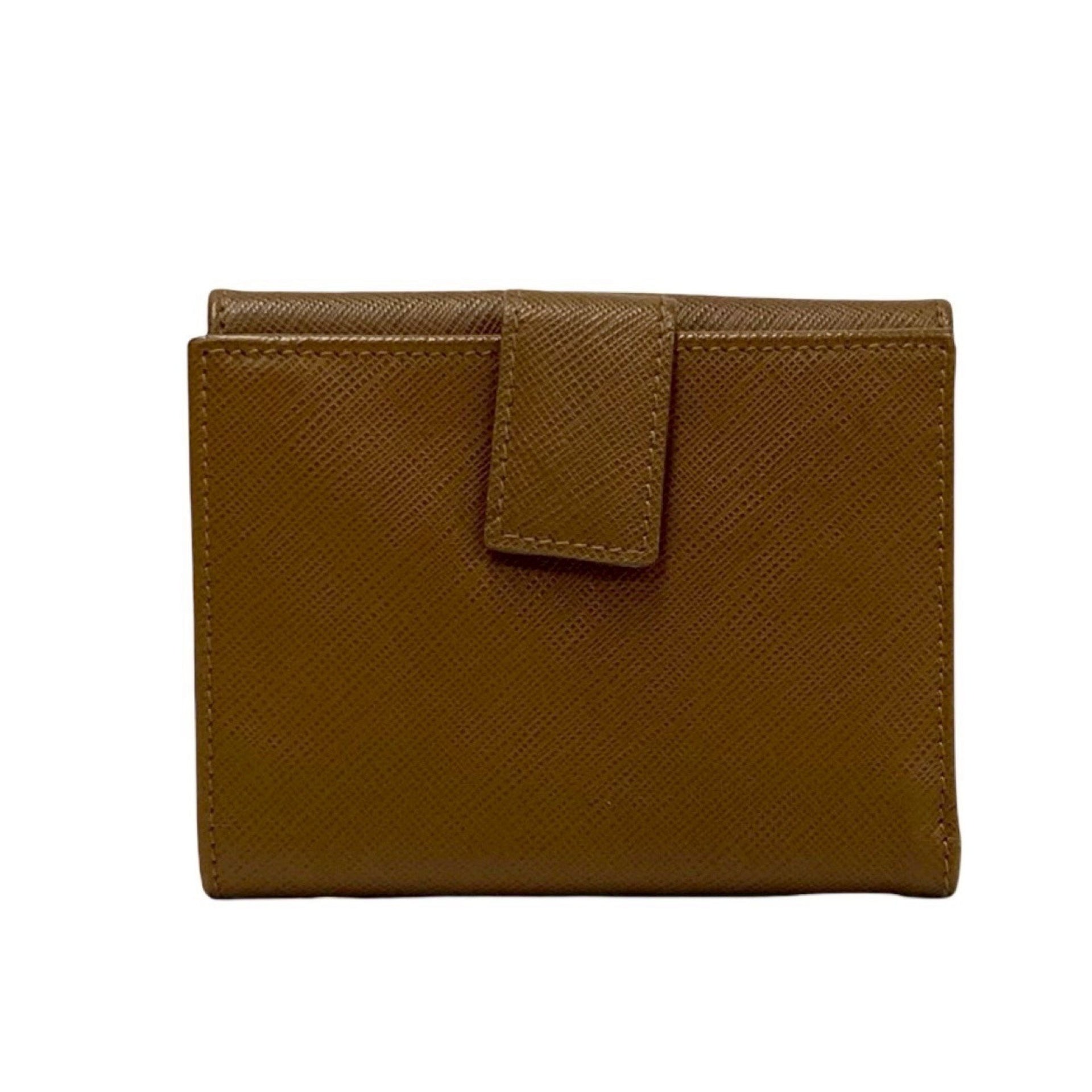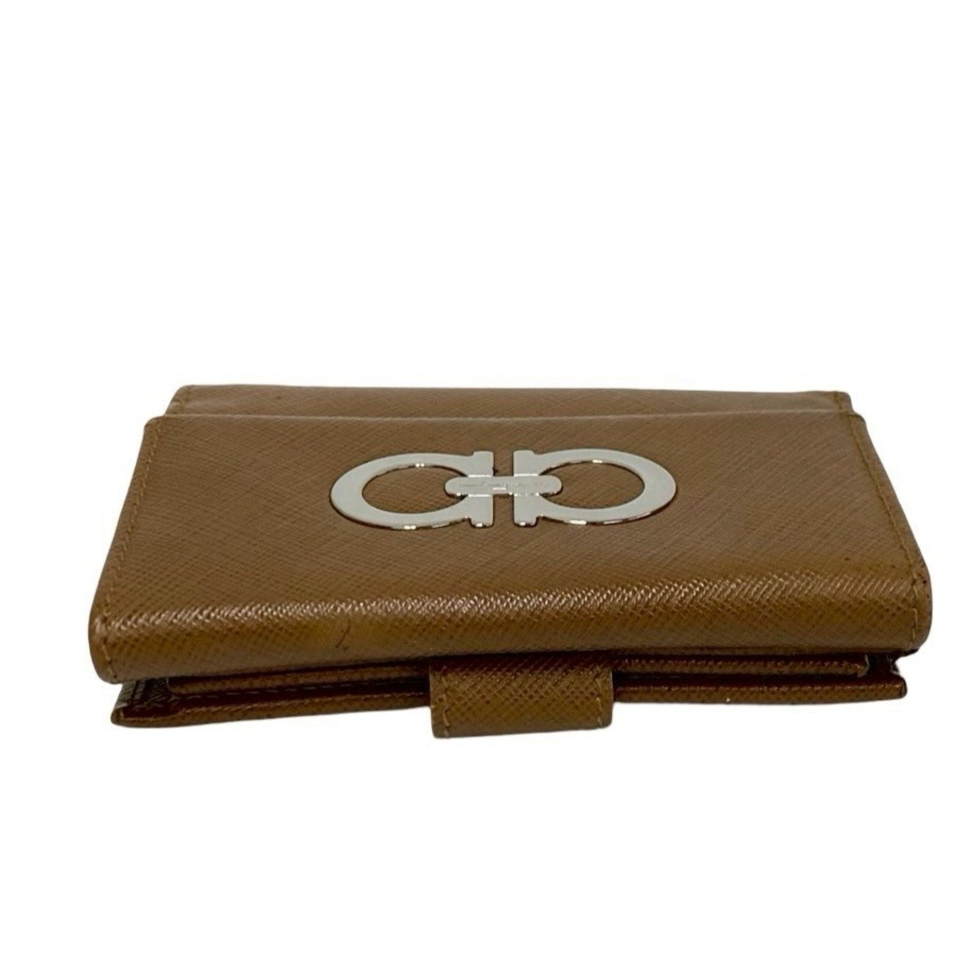 Salvatore Ferragamo Gancini logo hardware genuine leather bi-fold mini wallet brown 89156
