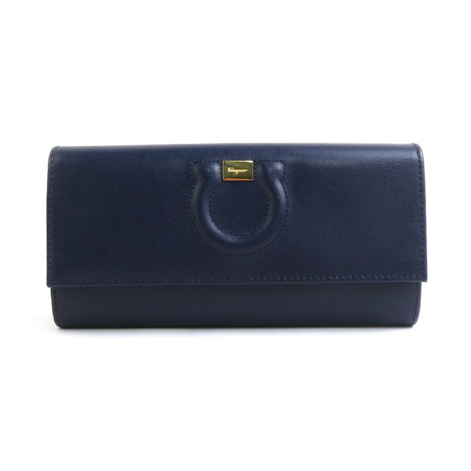 Salvatore Ferragamo Long Wallet Gancini Leather Navy Women\'s 56102a