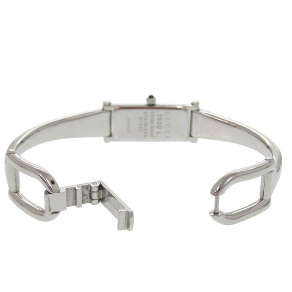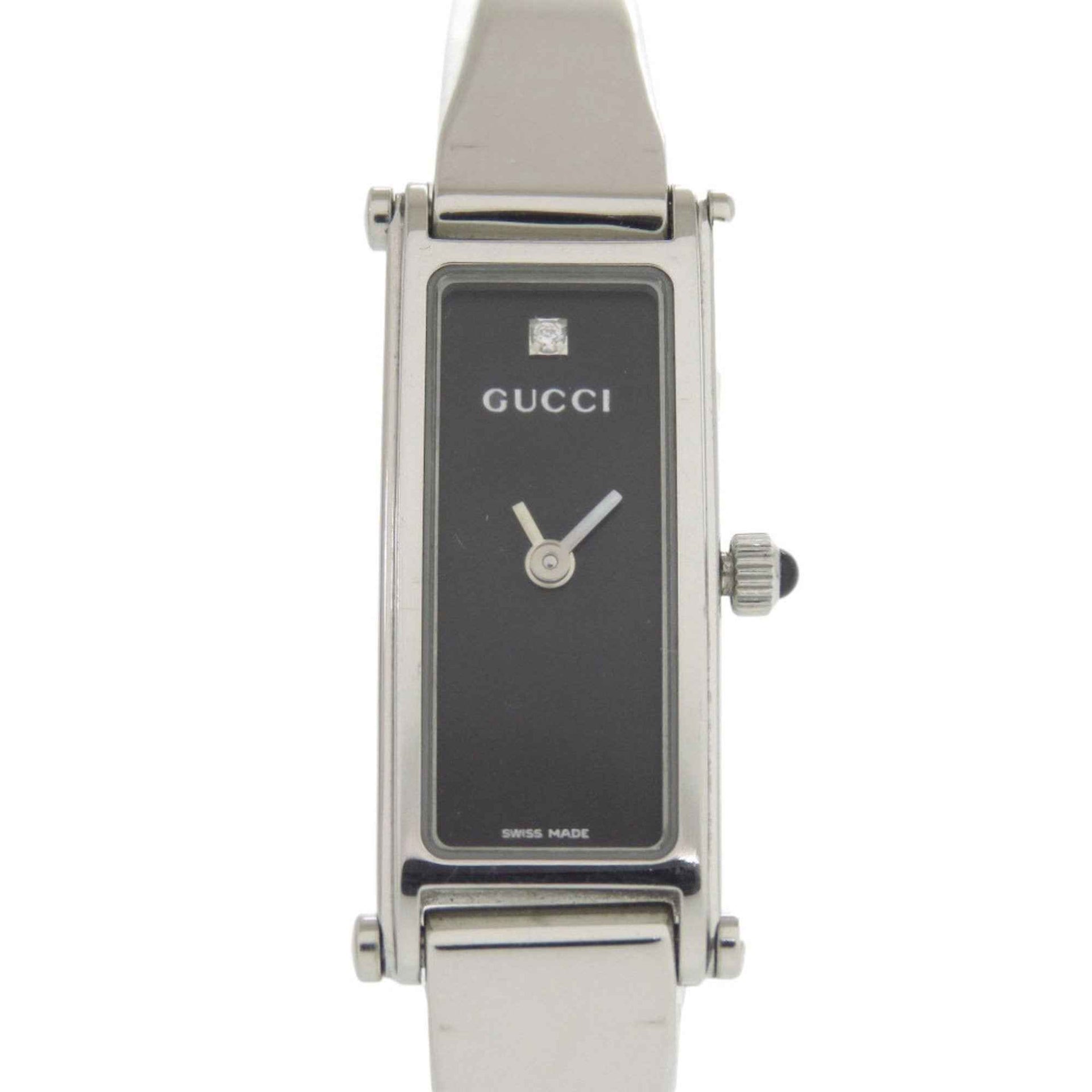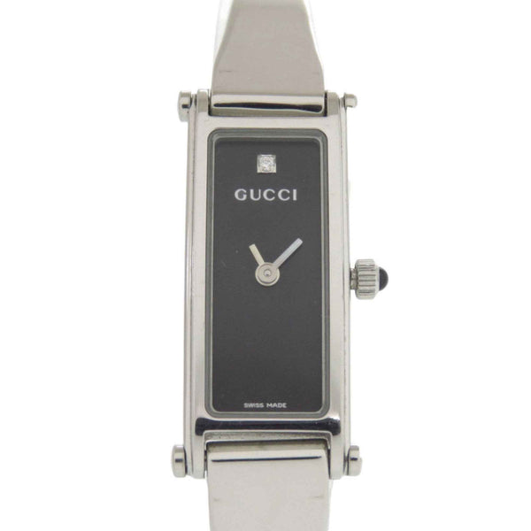Gucci 1500L Stainless Steel Watch with Single Diamond, Black Dial, Silver Quartz Movement, 1059