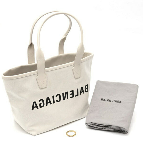 Balenciaga BALENCIAGA Jumbo Small Tote Bag 692068 Canvas Leather Natural Greige S-159082