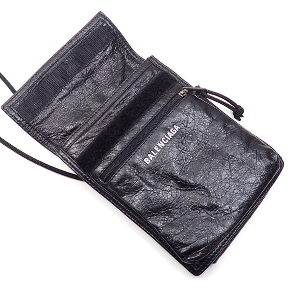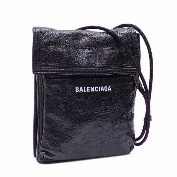 Balenciaga Explorer Shoulder Bag with Strap and Small Pouch, Black Leather, Men\'s, 532298