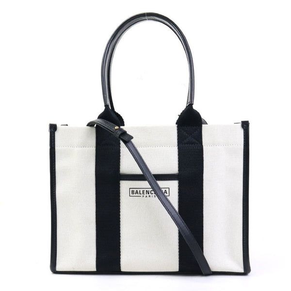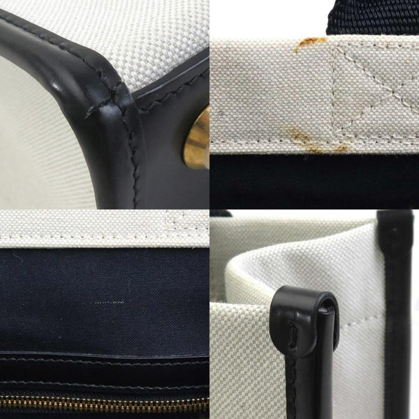BALENCIAGA Handbag Shoulder Bag Canvas Leather Ivory x Black Women\'s 671402 h31293a