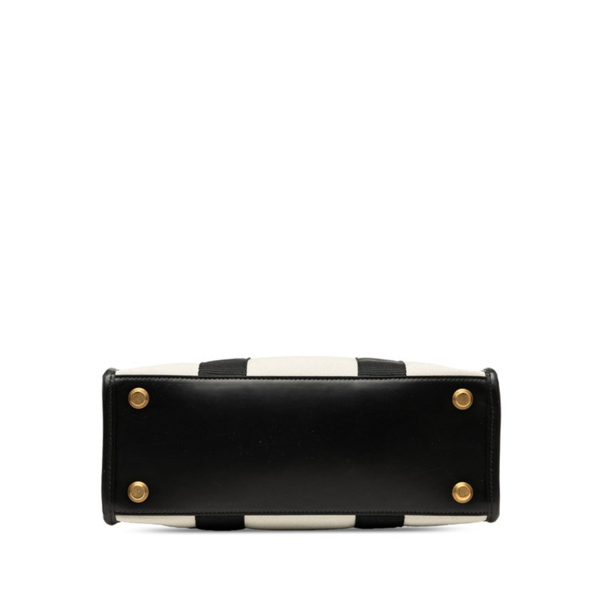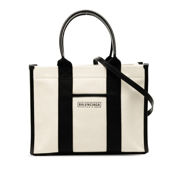 Balenciaga Hardware Small Tote/Shoulder Bag, 2-Way, 671402, Ivory/Black Canvas/Leather, Women\'s, BALENCIAGA