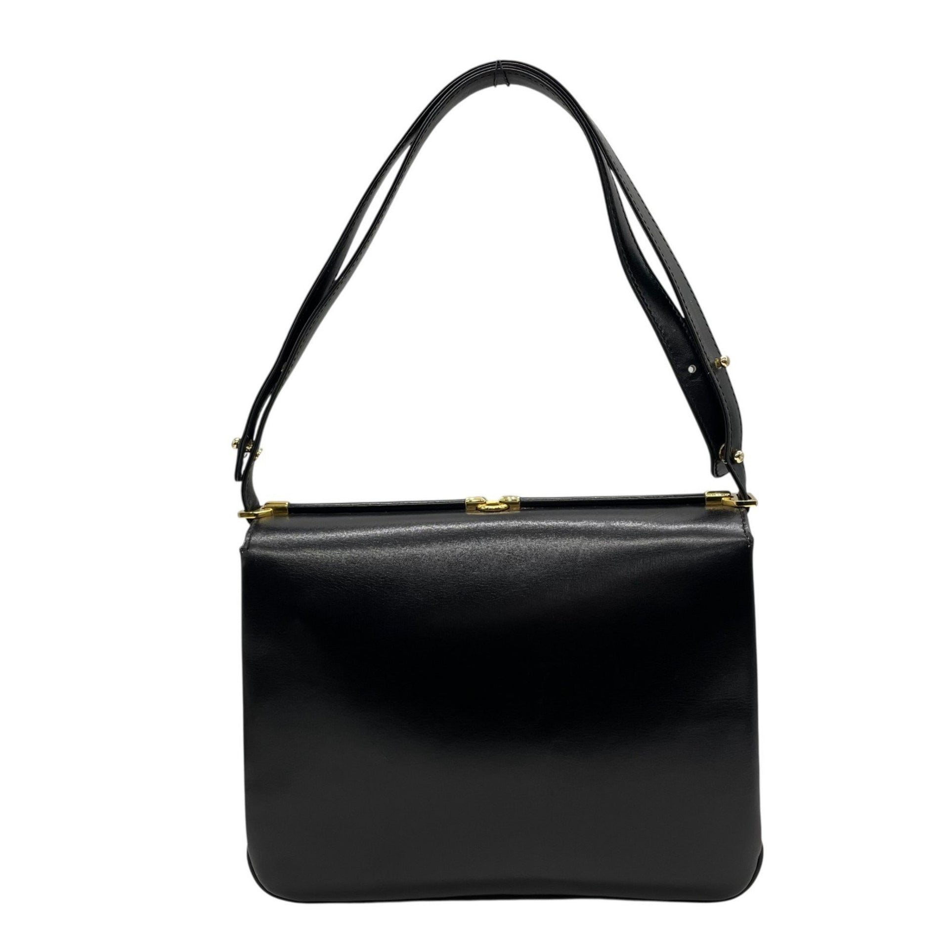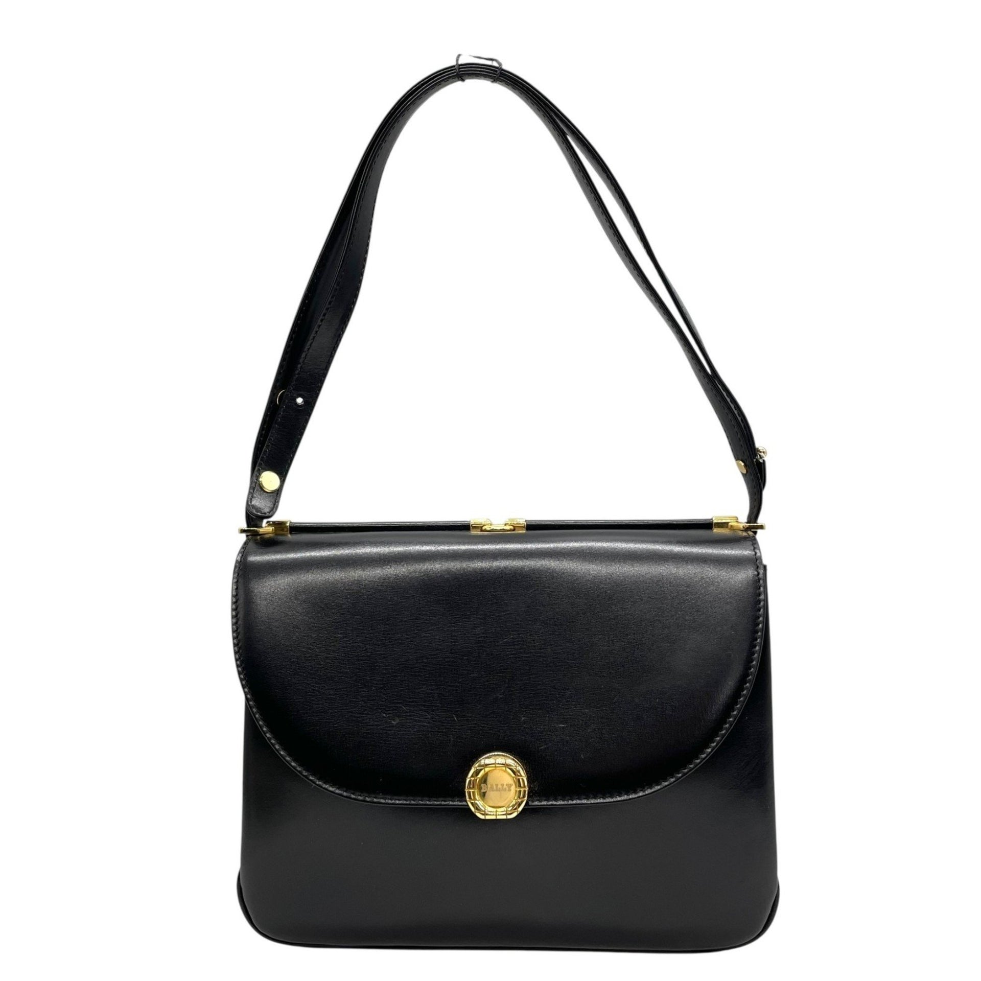 Bally Vintage Leather Shoulder Bag, Black with Gold Hardware and Flap, C3