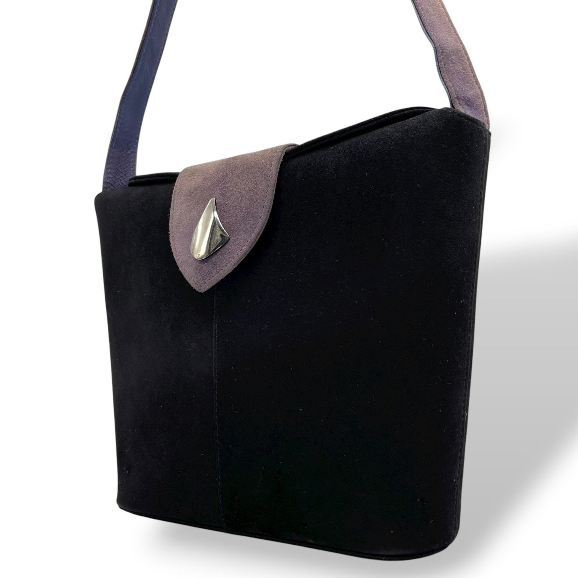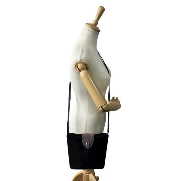 Bally Women\'s Suede and Leather Combination Shoulder Bag with Flap, Black Gray Hardware, C12