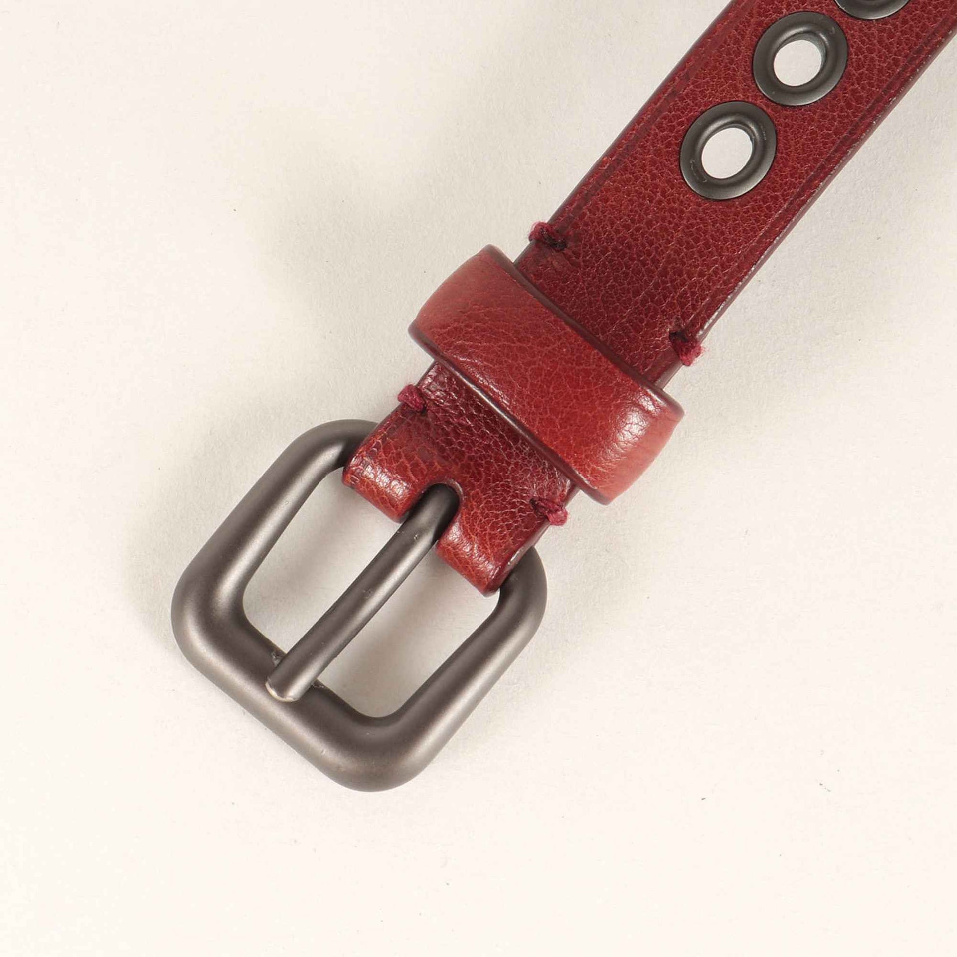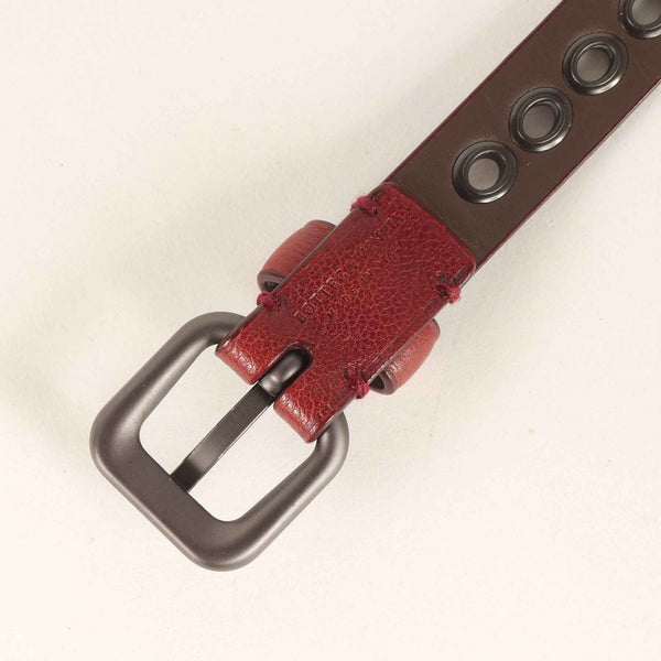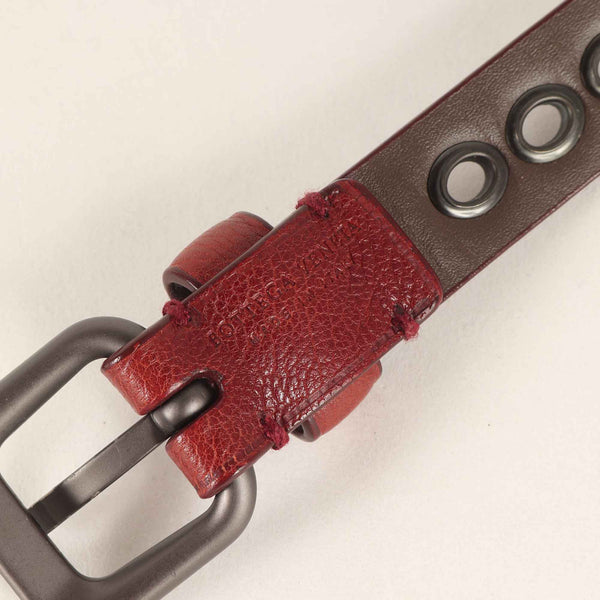 BOTTEGA VENETA Men\'s Brown Grained Leather Belt with Square Buckle and Oval Eyelets, Size: Free