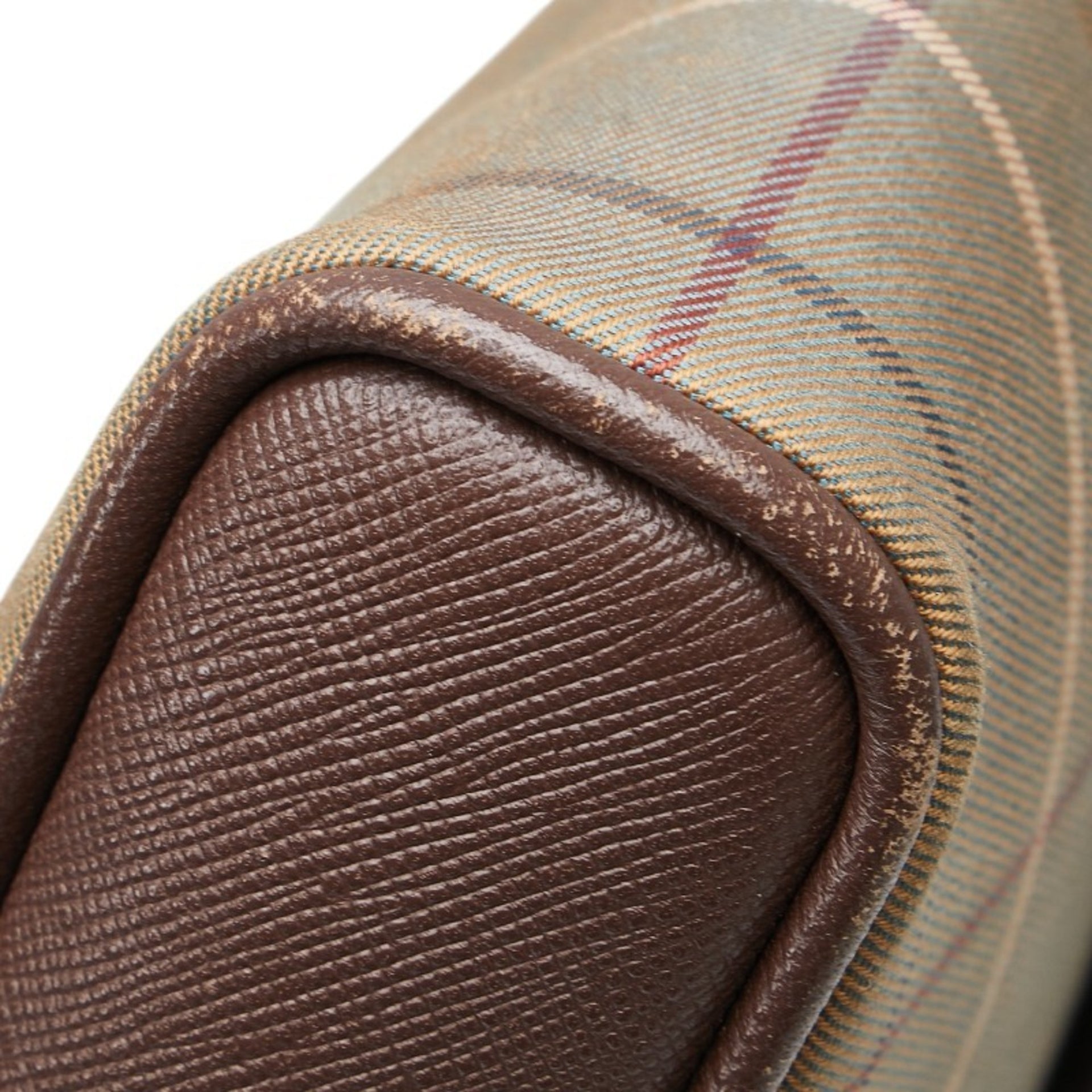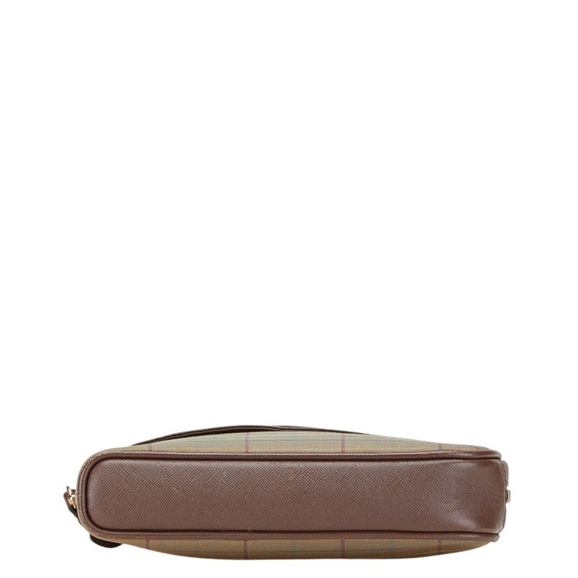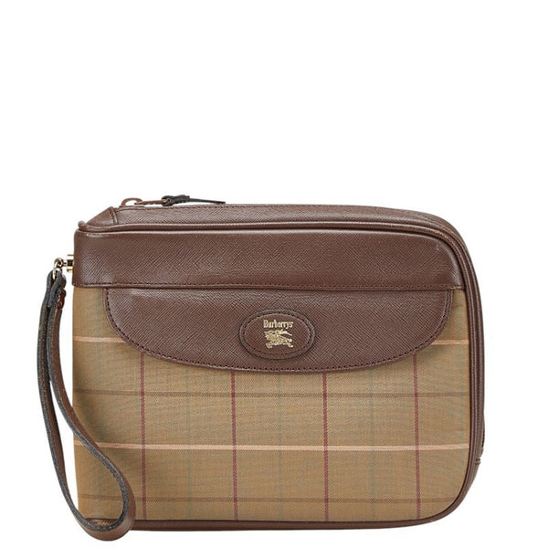 Burberry Check Pouch Clutch Bag Khaki Brown Multicolor Canvas Leather Women\'s BURBERRY
