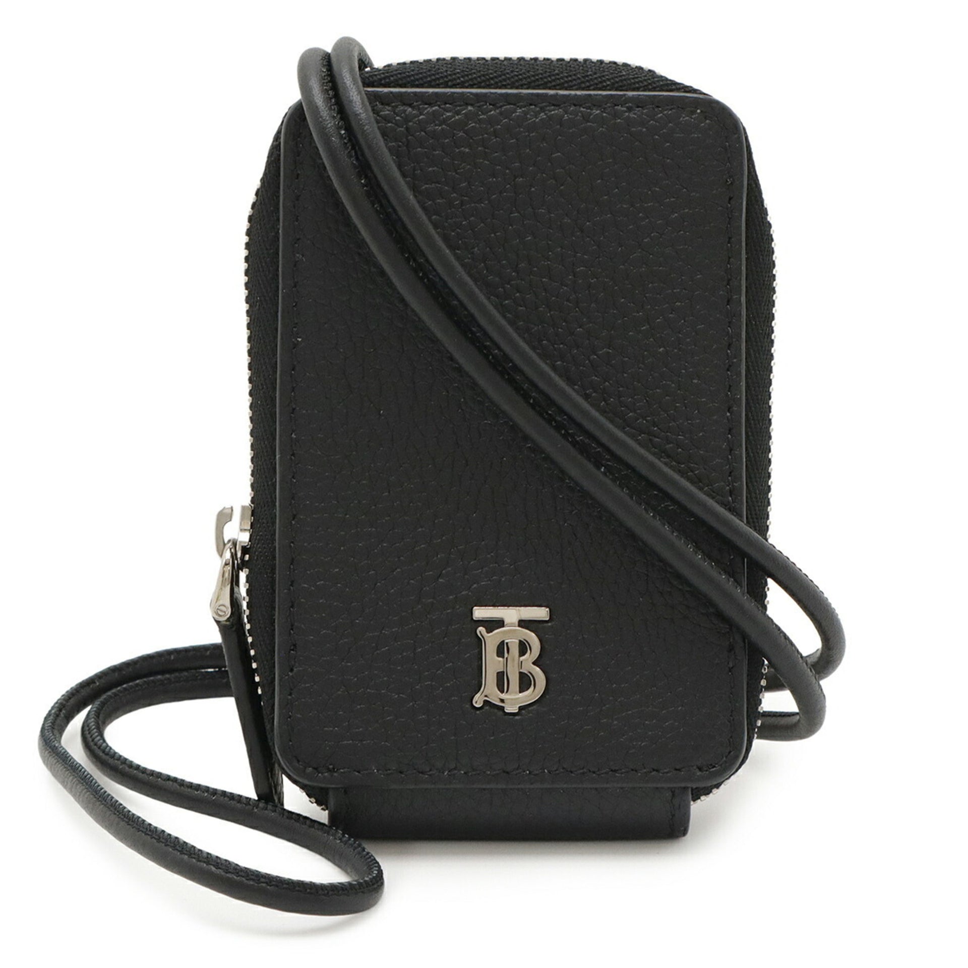 BURBERRY TB Card Case, Business Holder, Pass Coin Wallet, Purse, Neck Strap, Black, 8028233