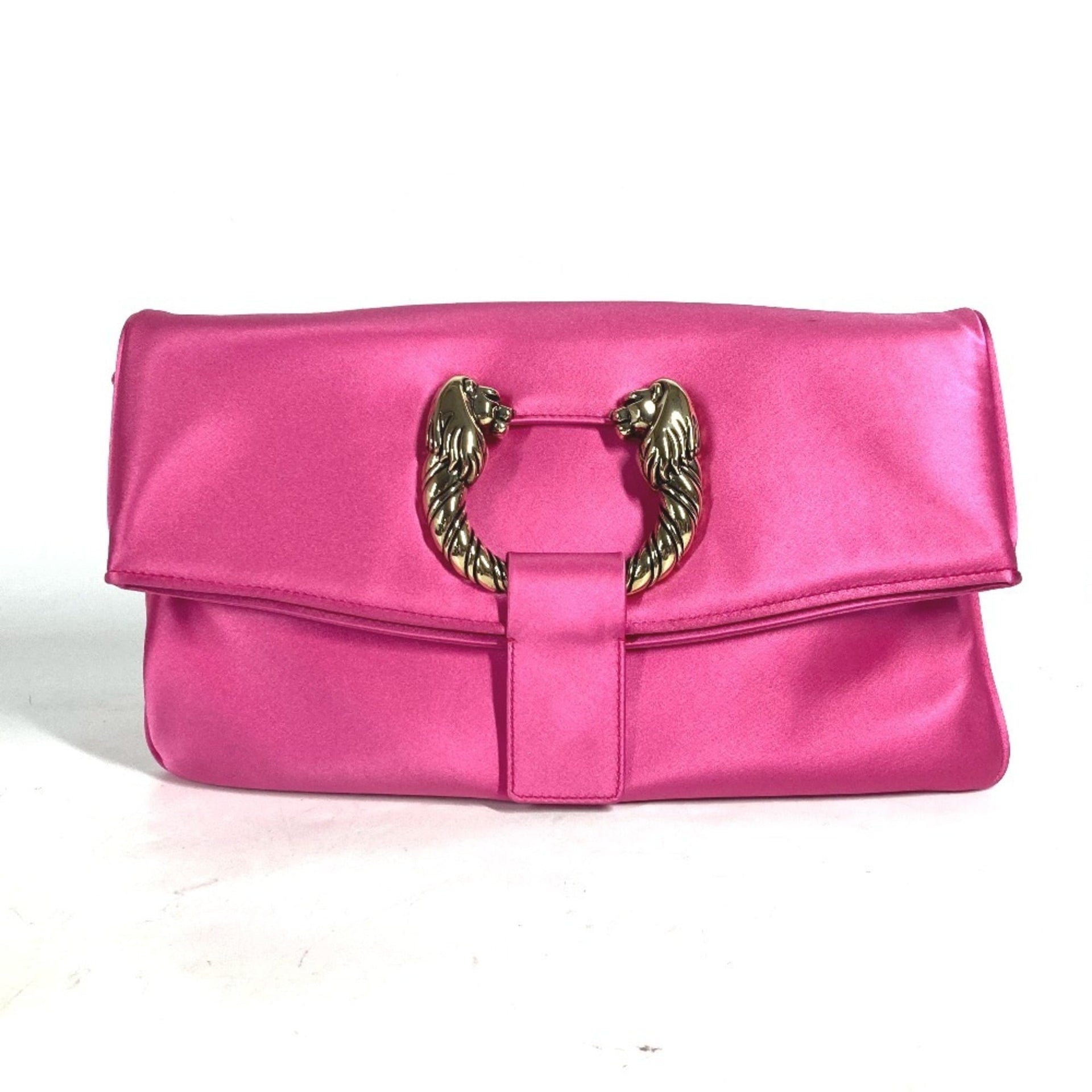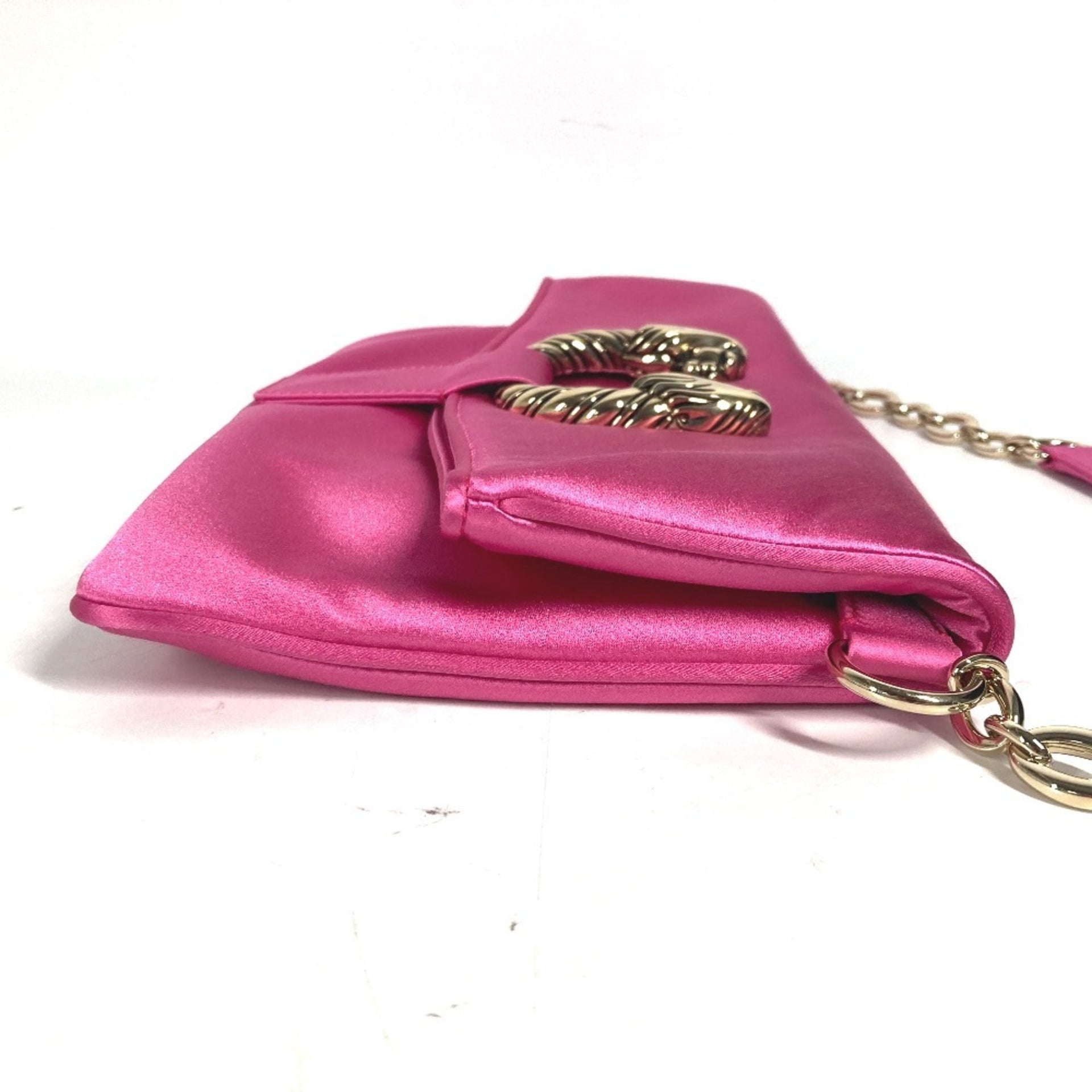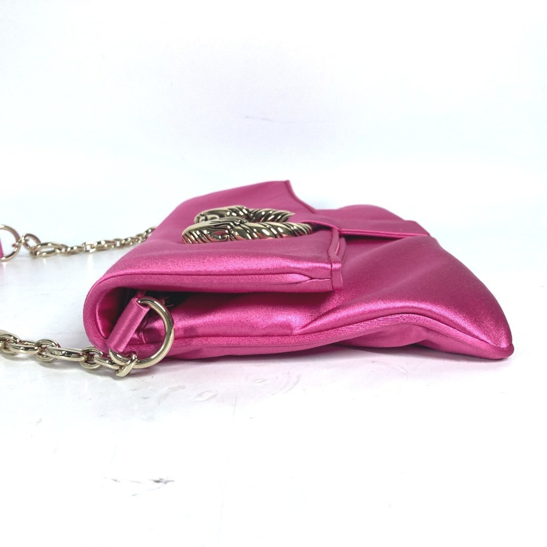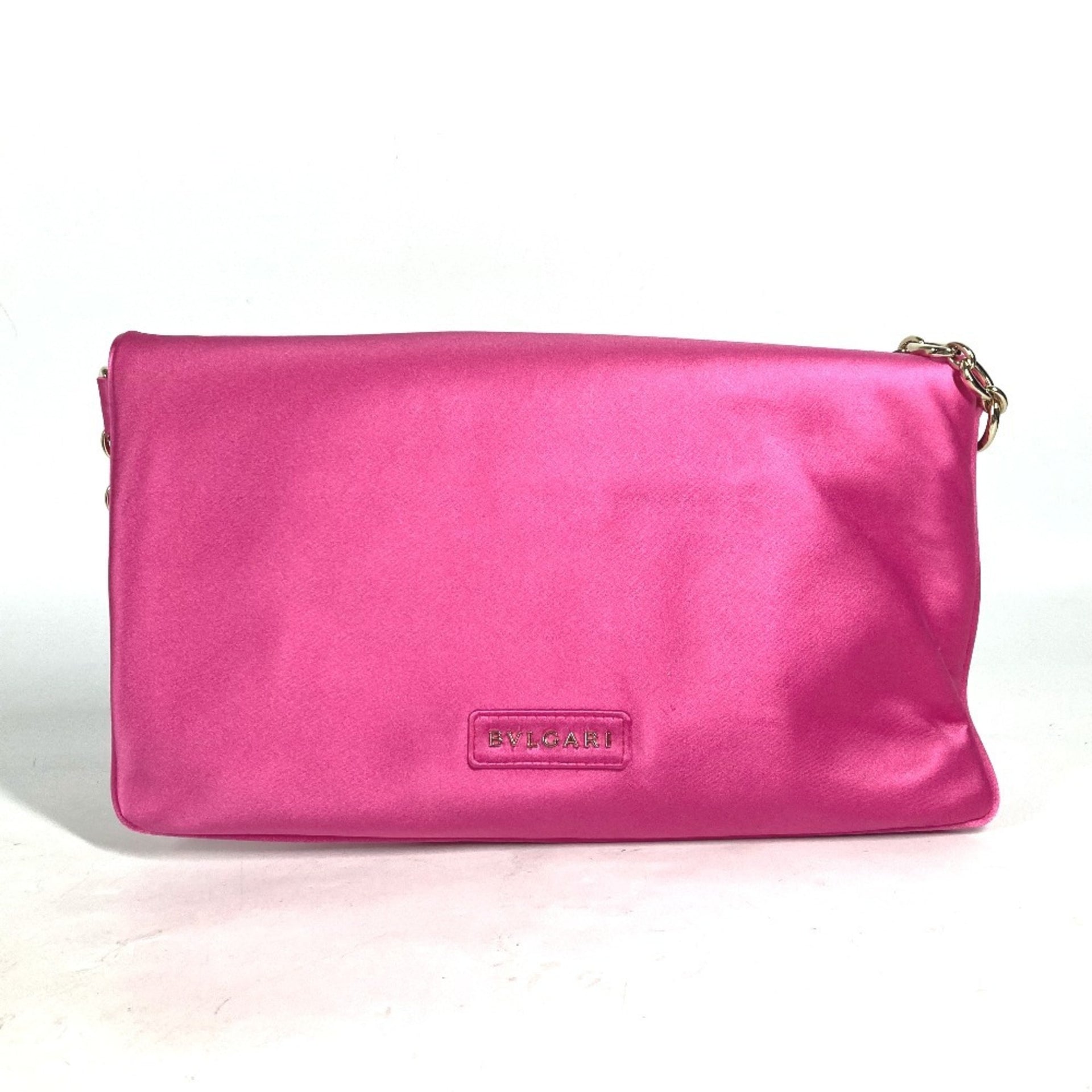 BVLGARI 2WAY Bag Clutch Leoni Chain Flap Shoulder Party Satin Women\'s Pink