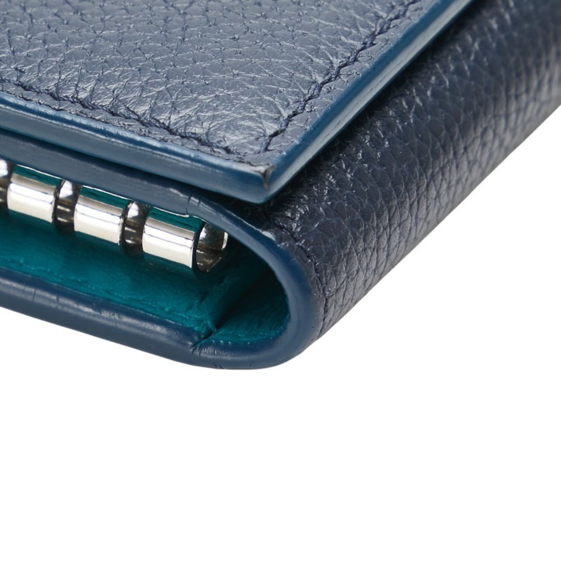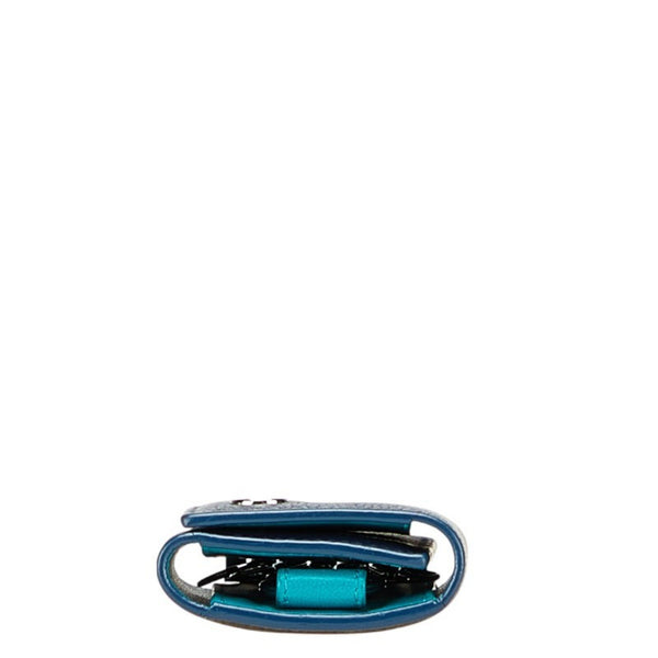 BVLGARI 6-ring key case in navy and emerald green leather for women