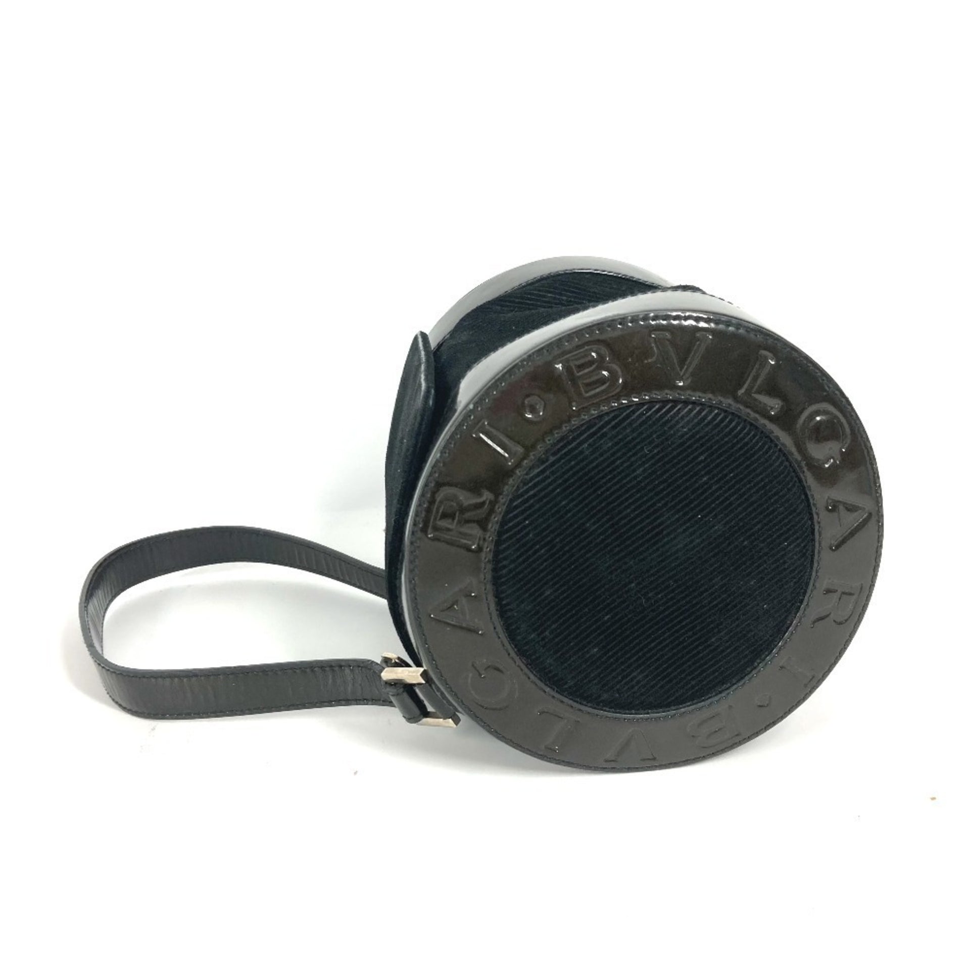 BVLGARI B-ZERO1 Logomania Drum Cylindrical Bag Shoulder Handbag Suede Enamel Women\'s Black