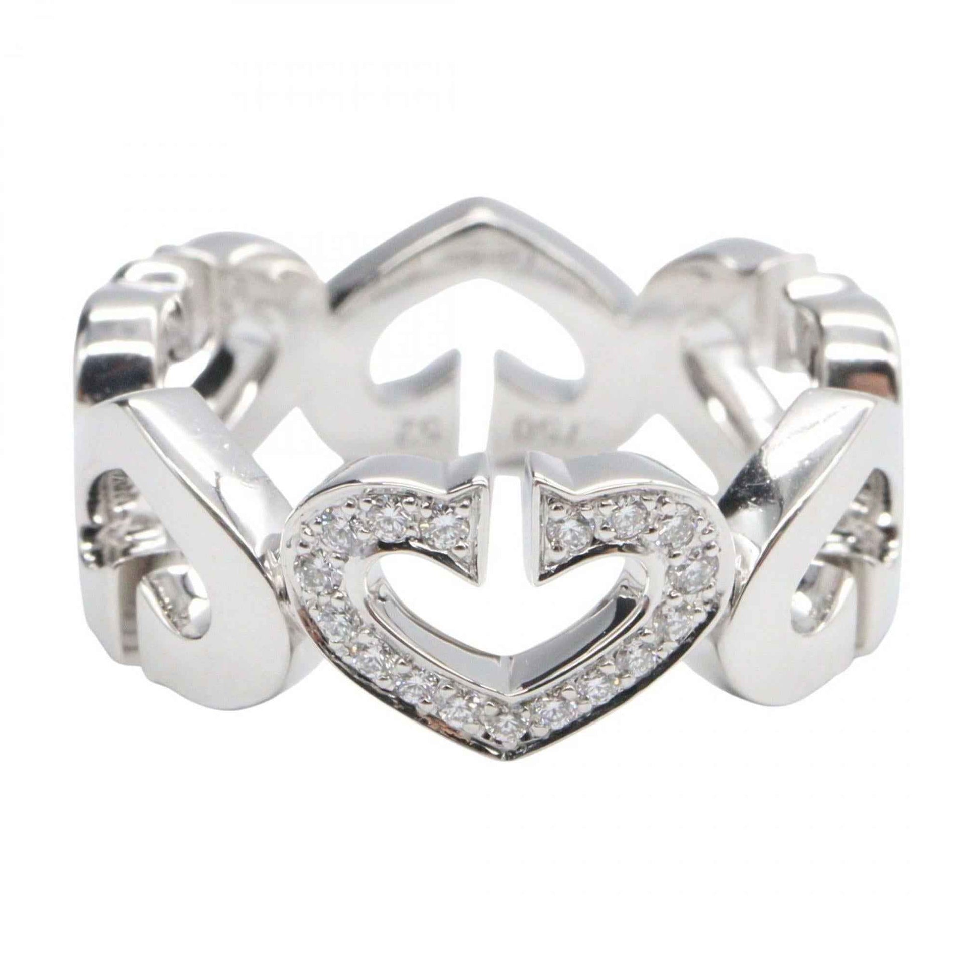 Cartier C Heart Diamond Ring in 18K White Gold (Silver or Clear).