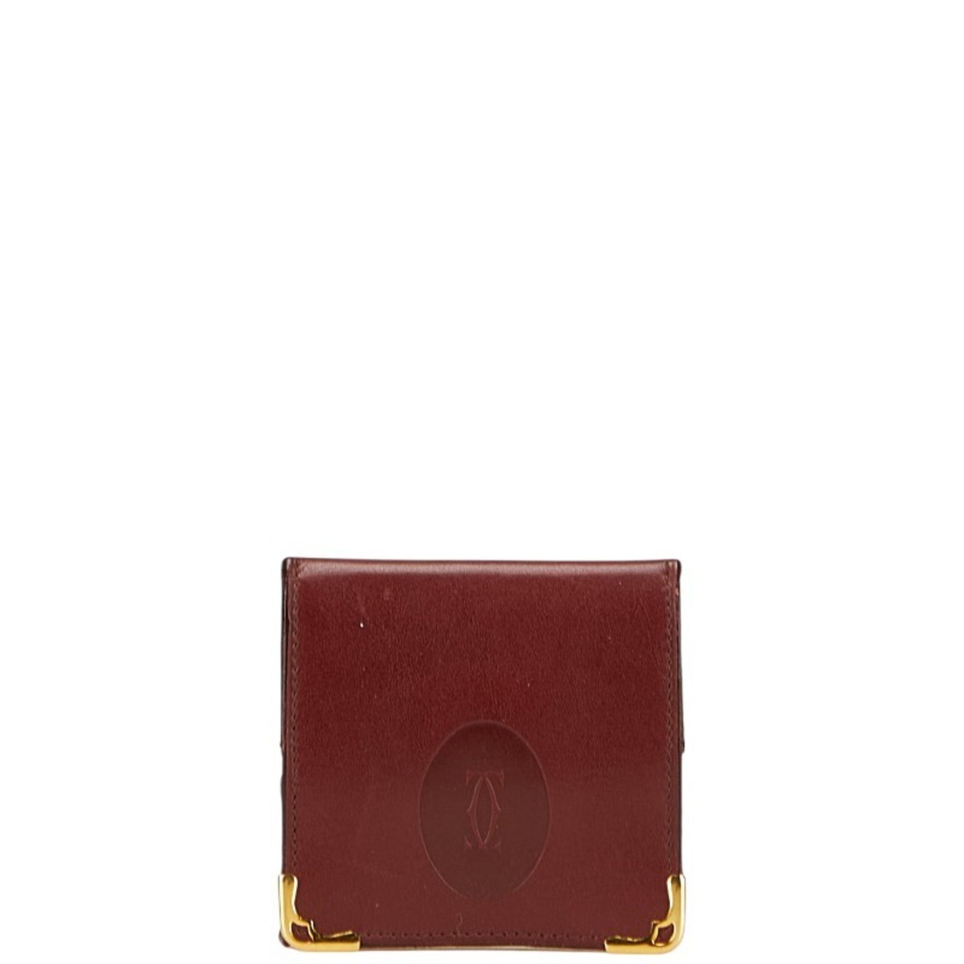 Cartier Must Line Wallet/Coin Case Wine Red Gold Leather Women\'s CARTIER