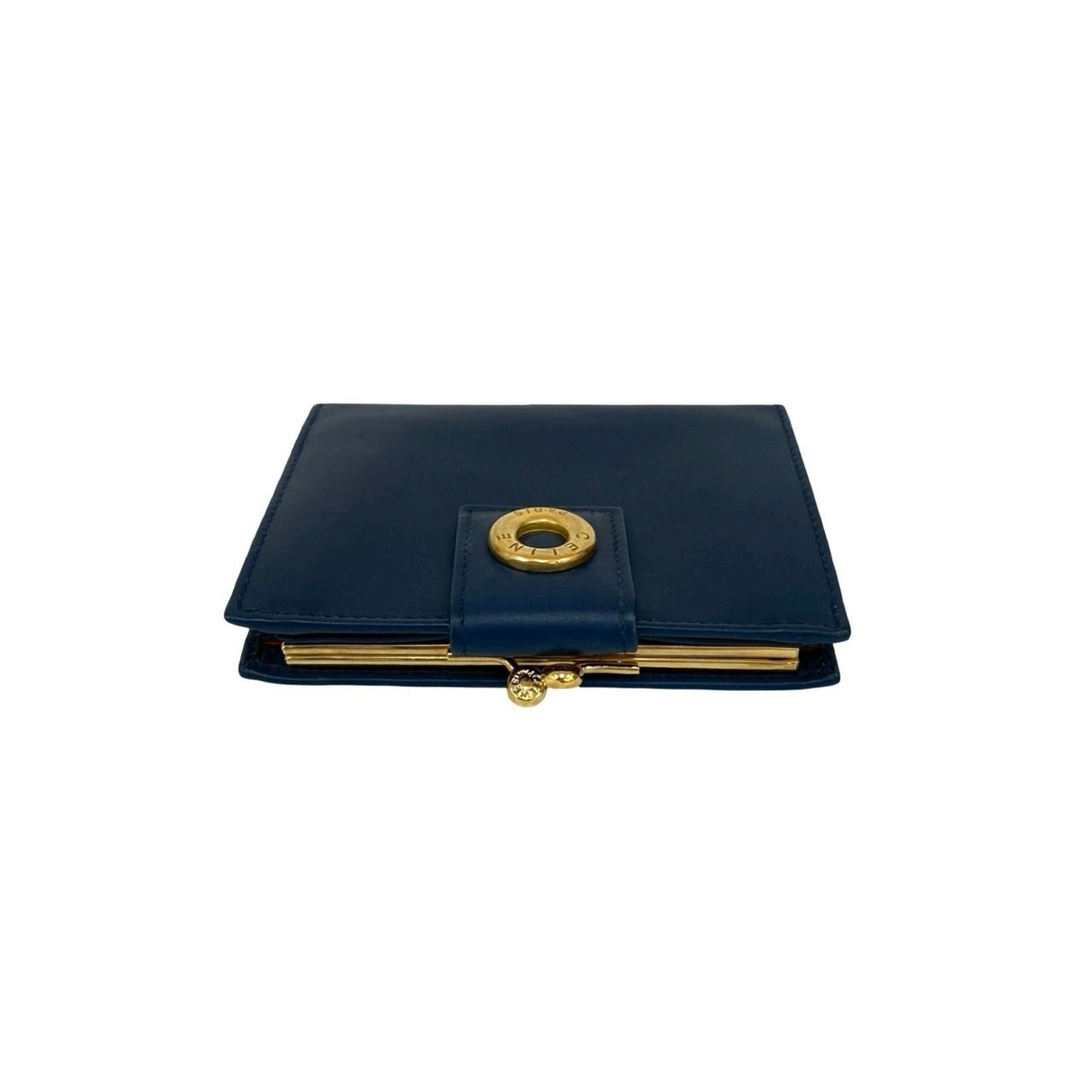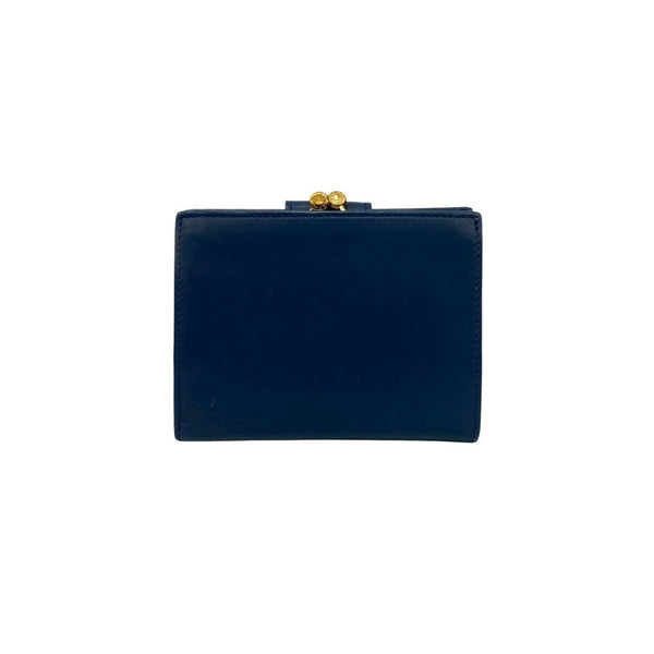 CELINE Circle Logo Leather Clasp Bi-fold Wallet Navy 49014