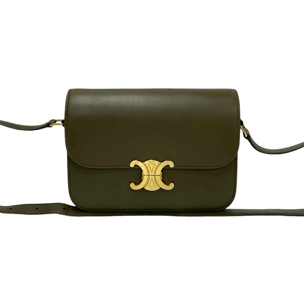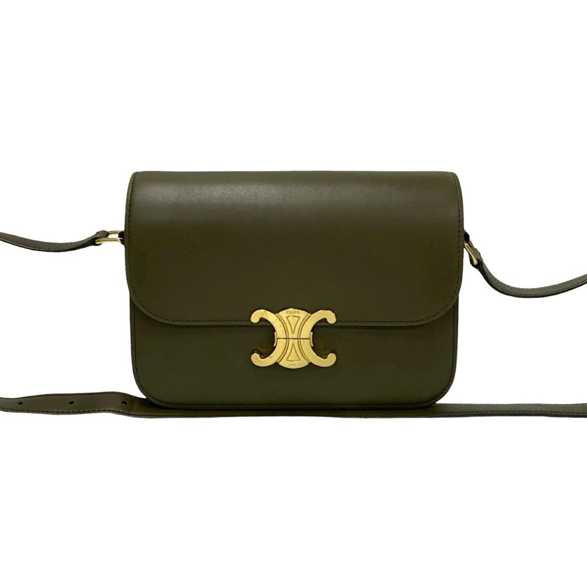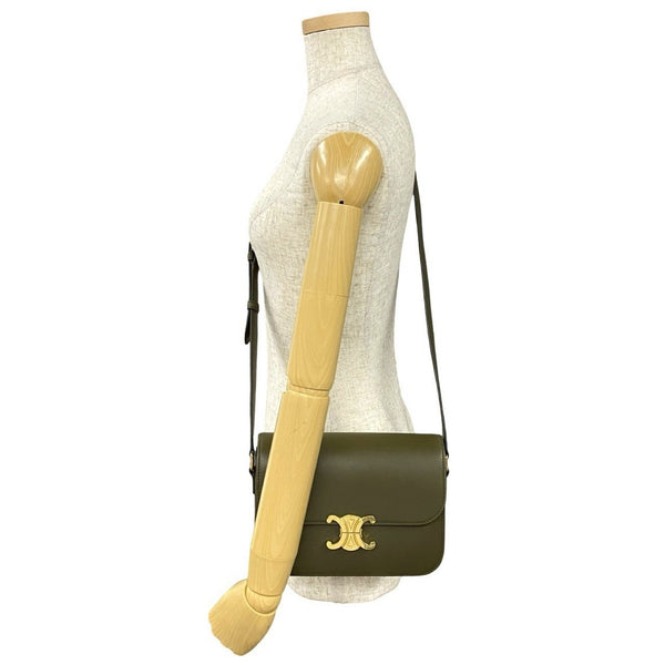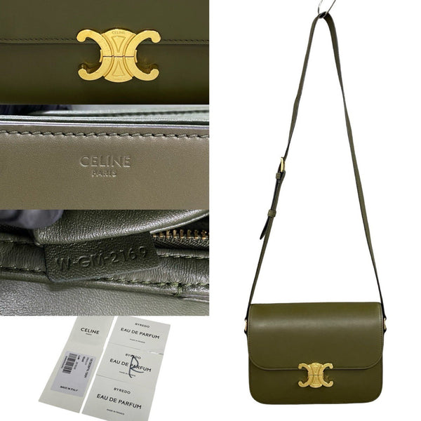 CELINE Classic Triomphe Logo Leather Mini Shoulder Bag/Pochette/Sacoche Khaki 00262