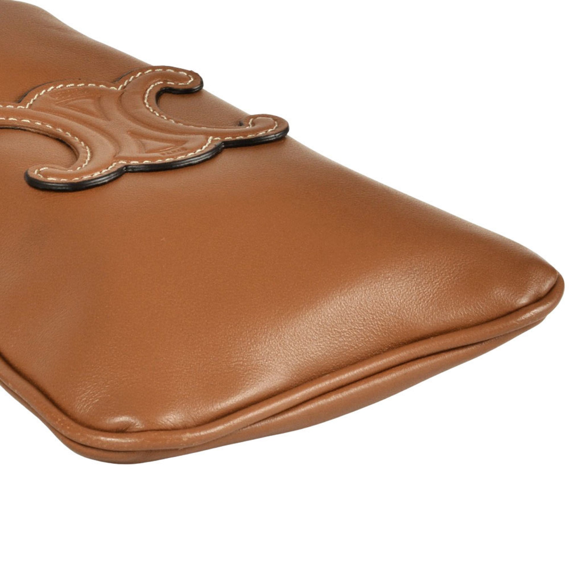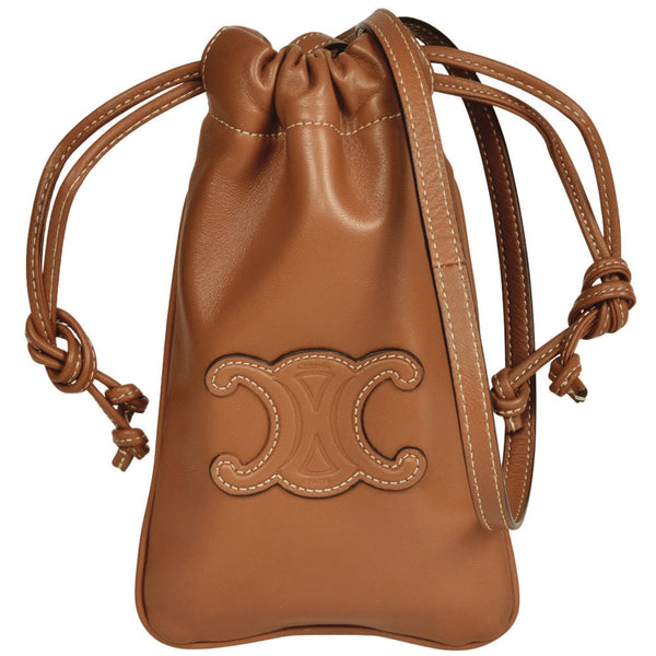 Celine Cuir Triomphe Drawstring Mobile Pouch Shoulder Bag Lambskin Brown Women\'s