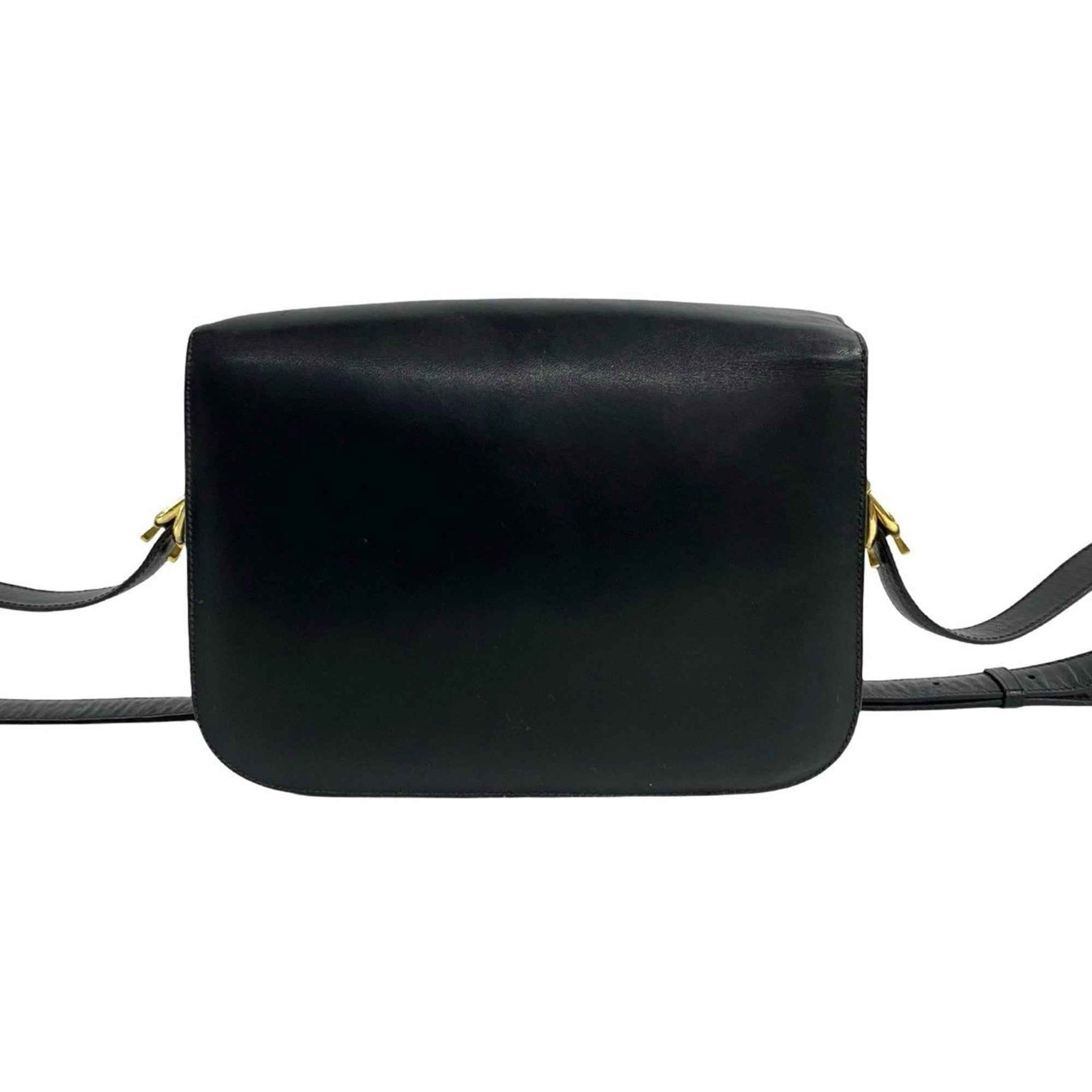 CELINE Horse-Drawn Carriage Hardware Calfskin Leather Shoulder Bag/Pochette/Sacoche in Black (23751)