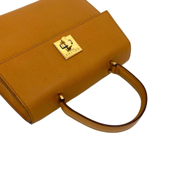 CELINE Logo Turnlock Hardware Leather Genuine 2-Way Handbag/Shoulder Bag Camel 05993