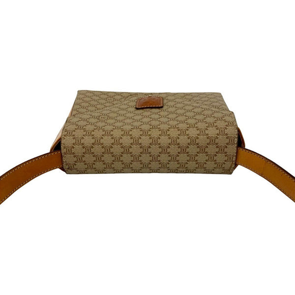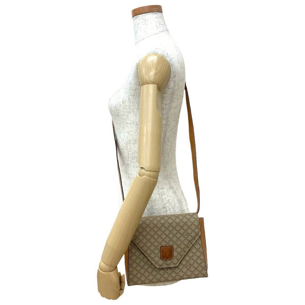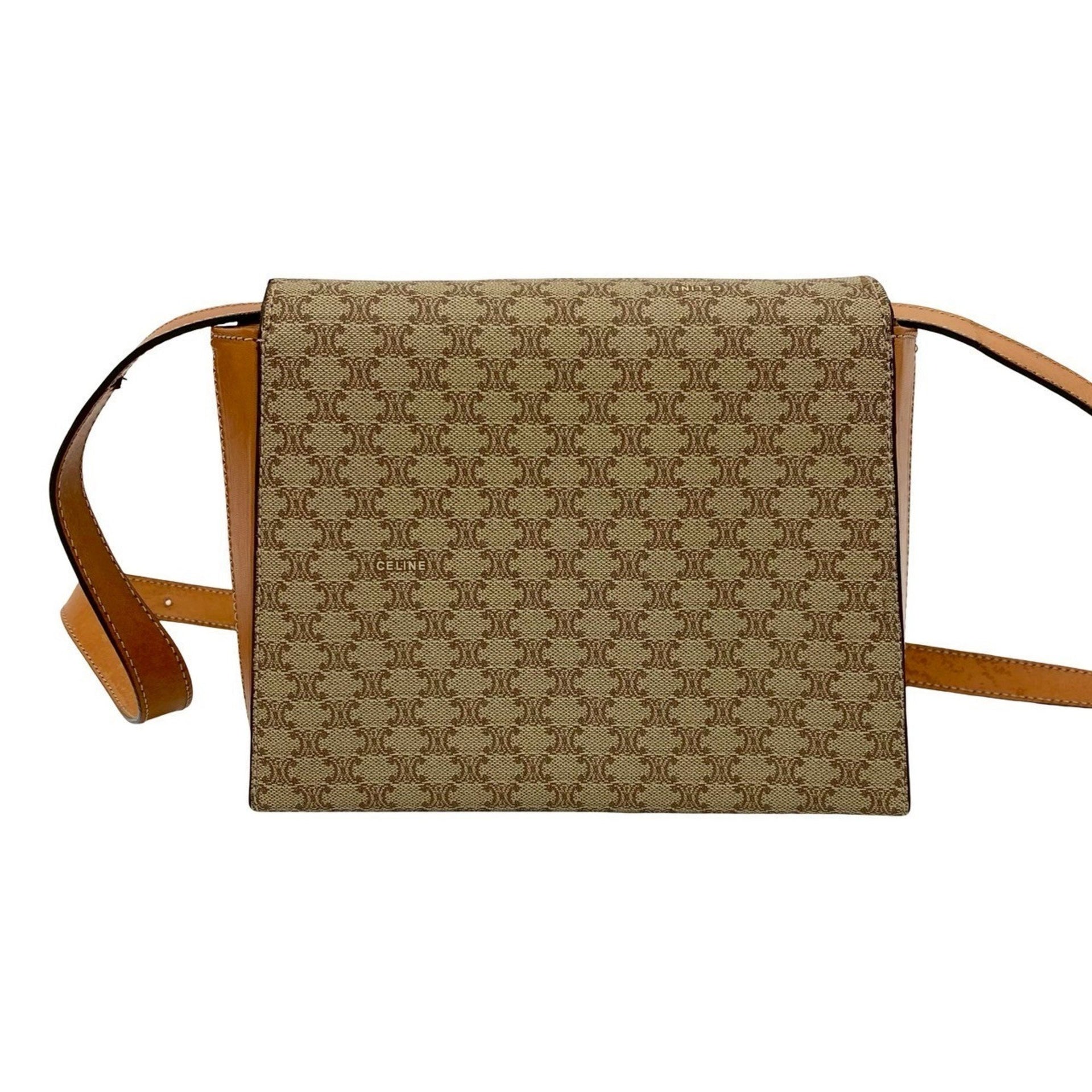 CELINE Macadam Blason Pattern Triomphe Logo Leather Shoulder Bag in Beige and Brown (37573)