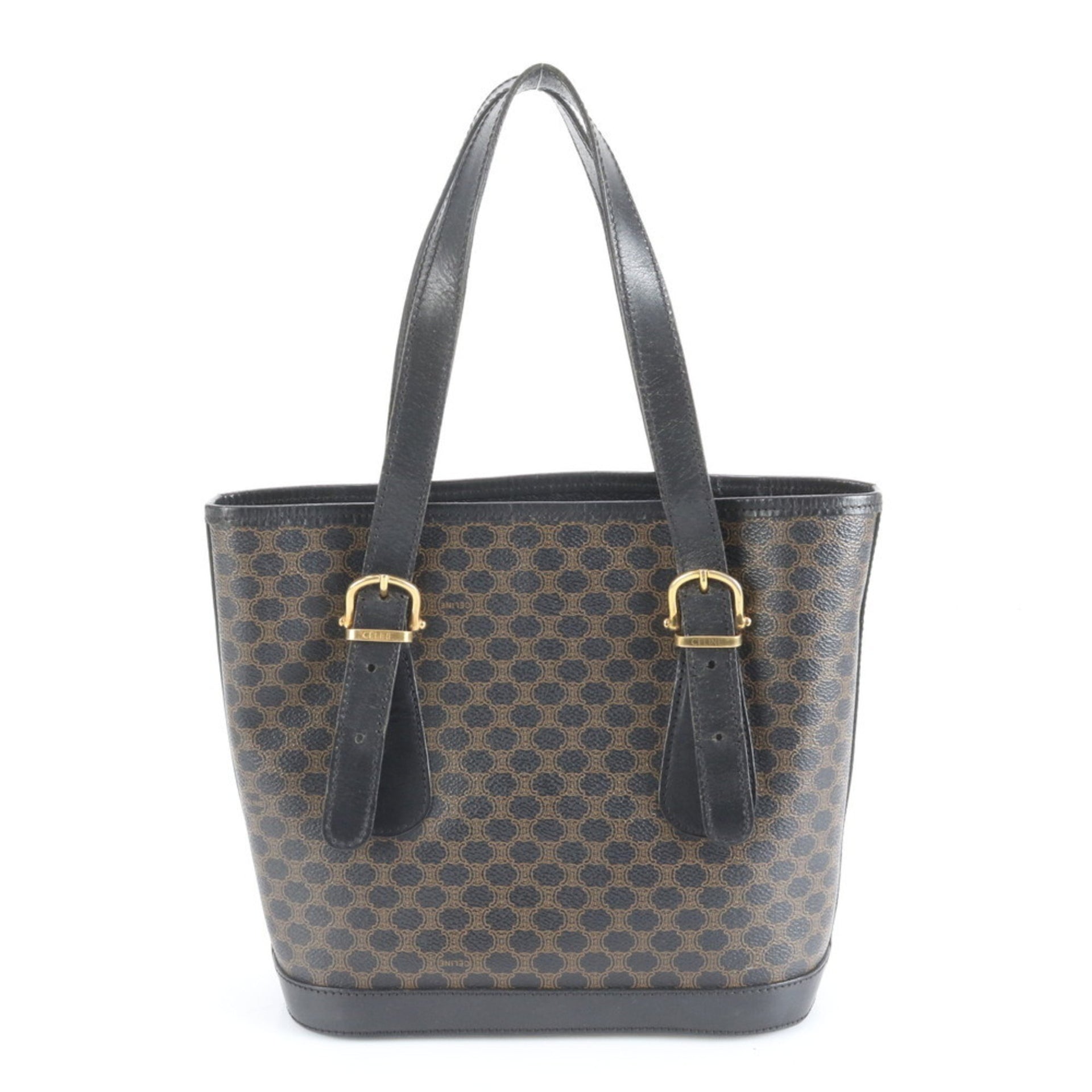 Celine Macadam Leather Tote Bag Shoulder Black with Gold Hardware for Women