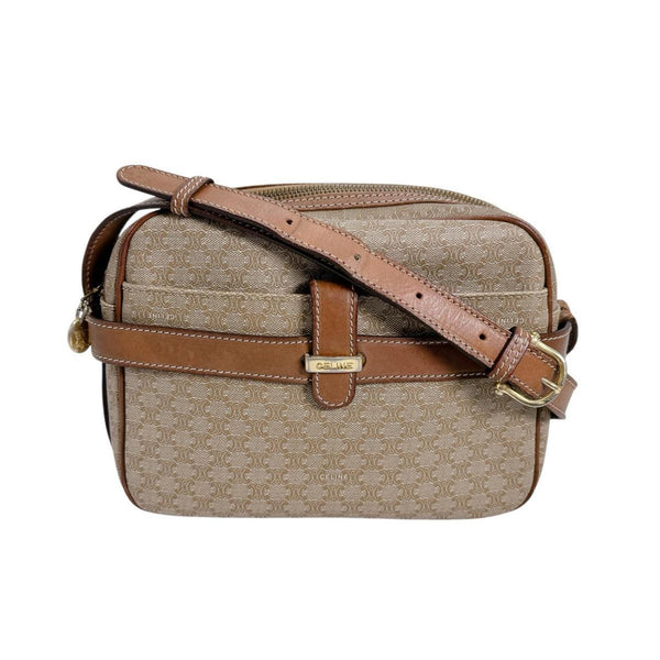 CELINE Shoulder Bag Macadam Blazon Logo x Leather Brown