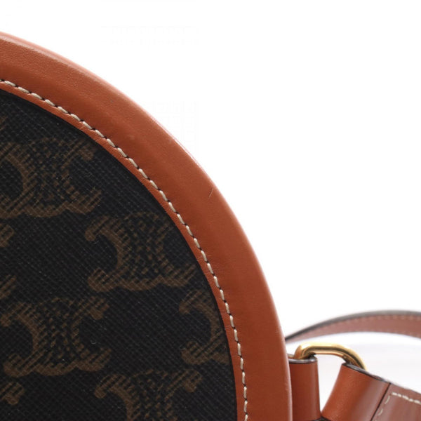 Celine Tambour Medium Triomphe Shoulder Bag in PVC-Coated Canvas and Leather, Brown