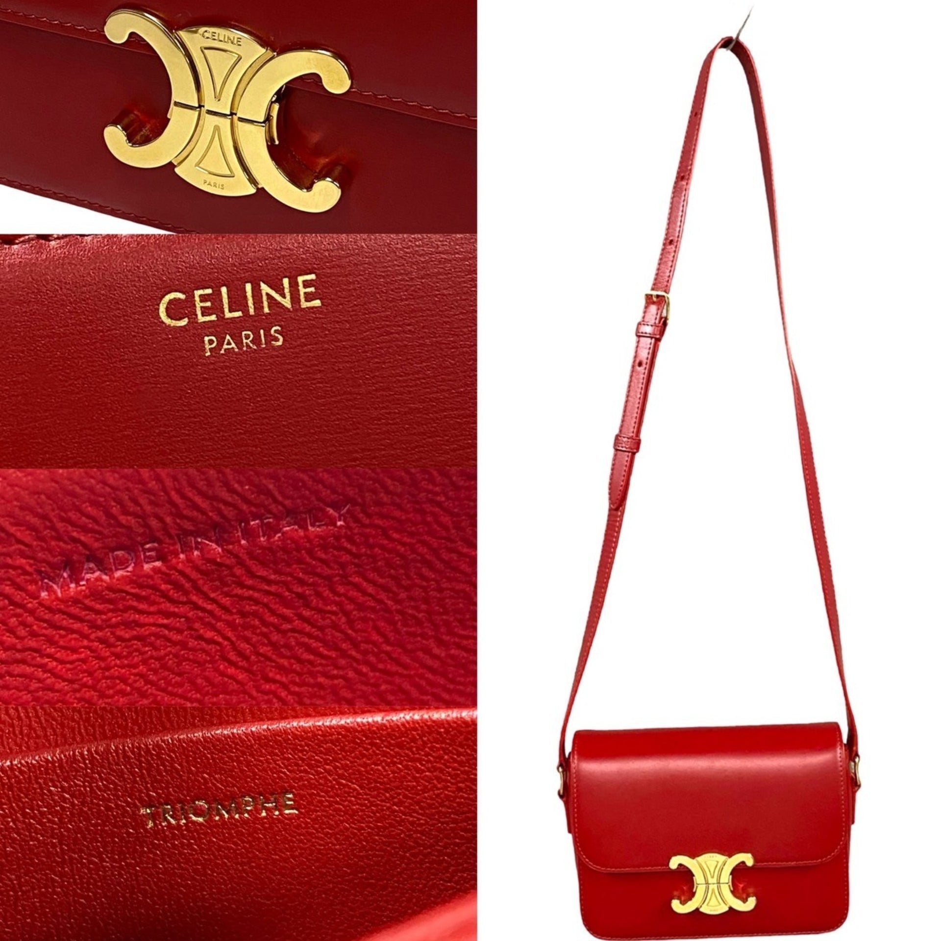 CELINE Triomphe Logo Hardware Leather Mini Shoulder Bag Pochette Red 36147